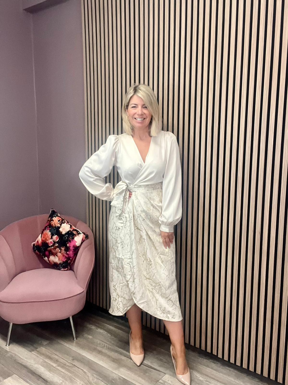AMY PENCIL WRAP DRESS (CREAM/GOLD)