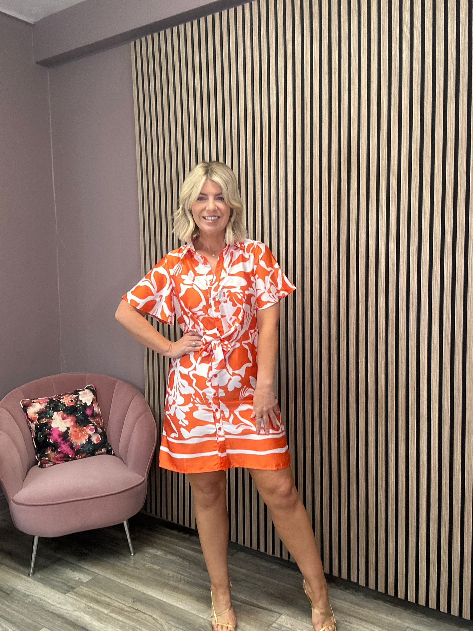 CENNY DENIM SHIRT DRESS (ORANGE)