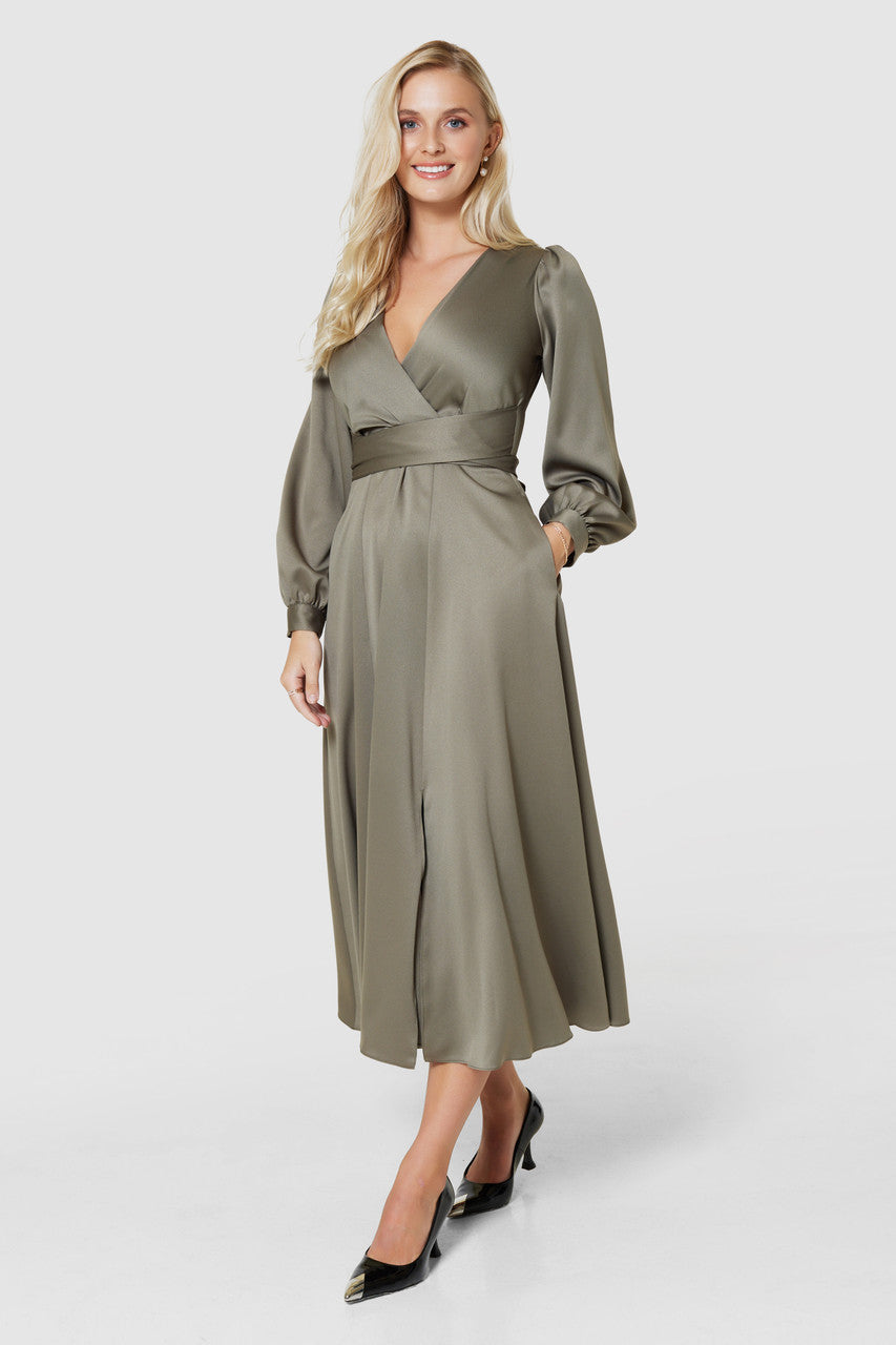 Earla Full Skirt Midi Dress (Olive) Earla Full Skirt Midi Dress (Olive)