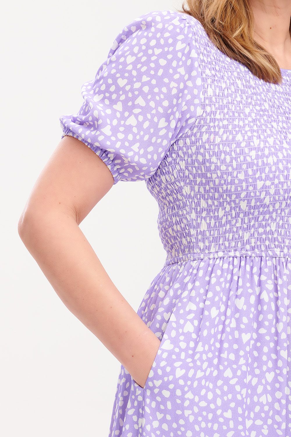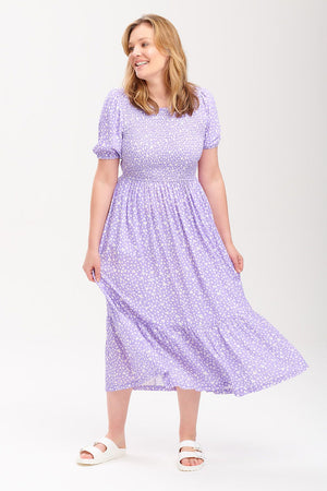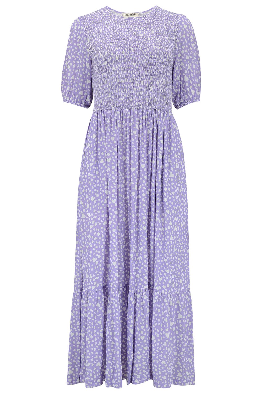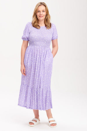 Arabella Midi Shirred Dress - Animal Pastel Love Heart (Lilac)