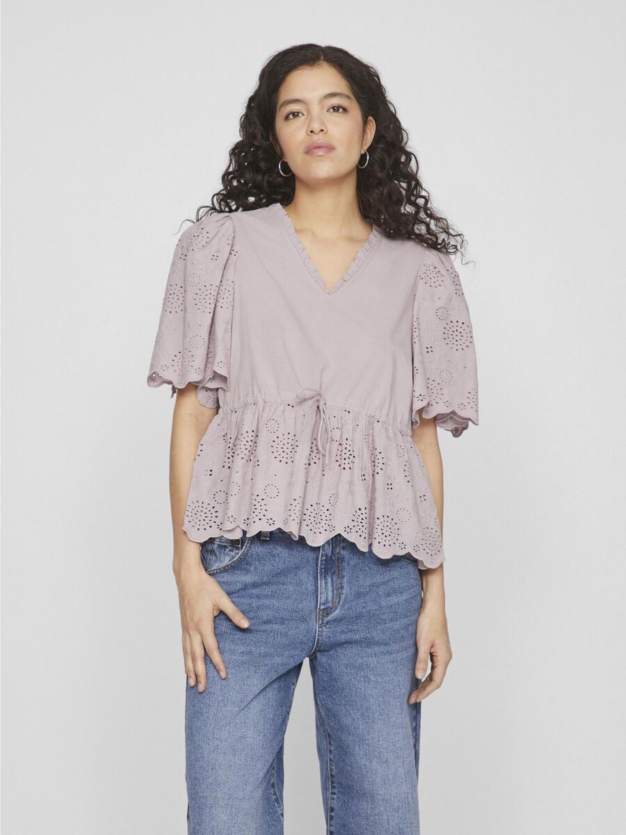 For effortless style and elegance look no further than the Aster Peplum Top from the Vila Rouge collection. Featuring a v-neck with a frill accent and a pull string for a customisable fit, this top flatters any figure with its peplum style and flutter sleeves. The delicate broderie anglaise provides the finishing touch.
