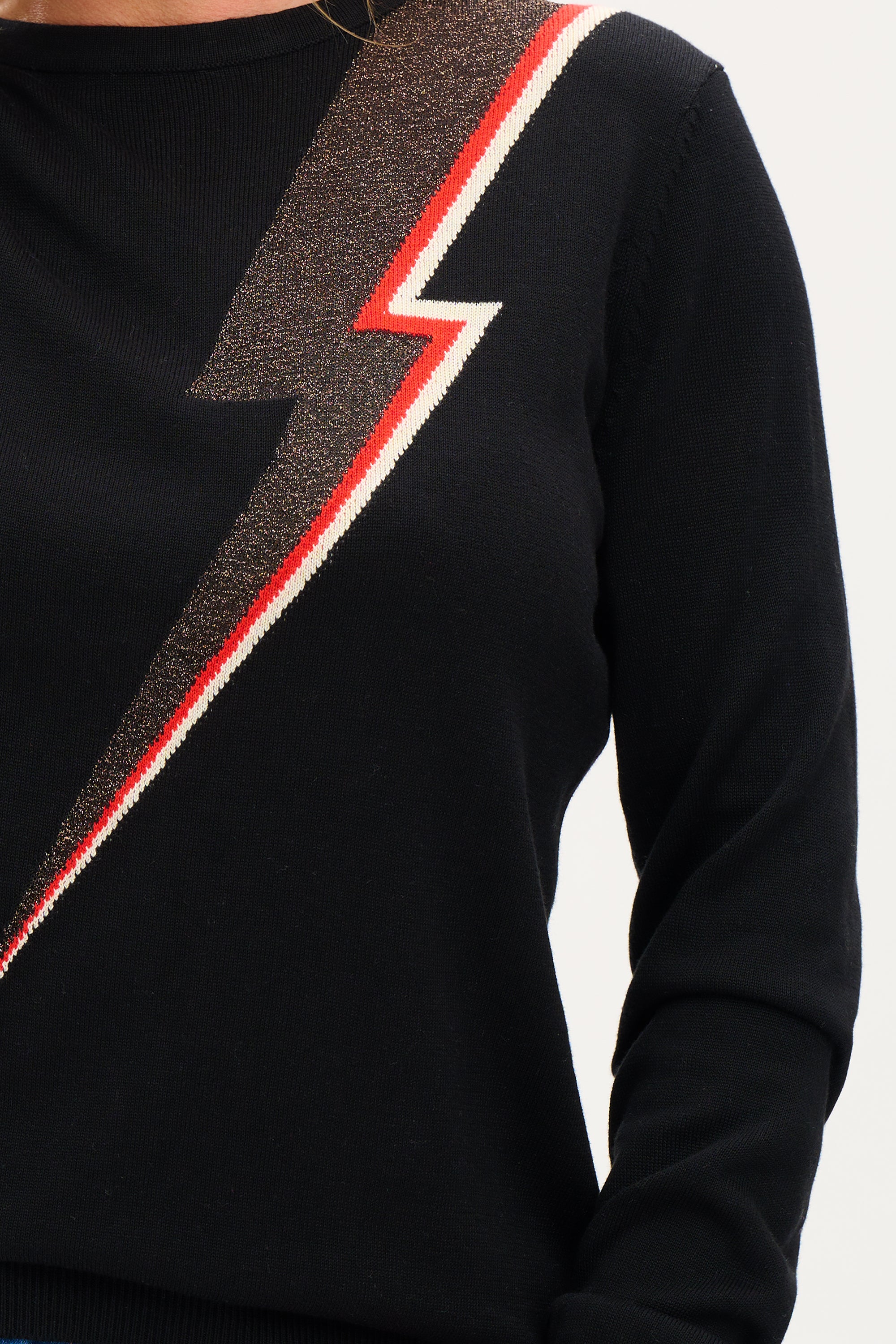 Astrid Jumper - Black, Bronze Lightning Bolt
