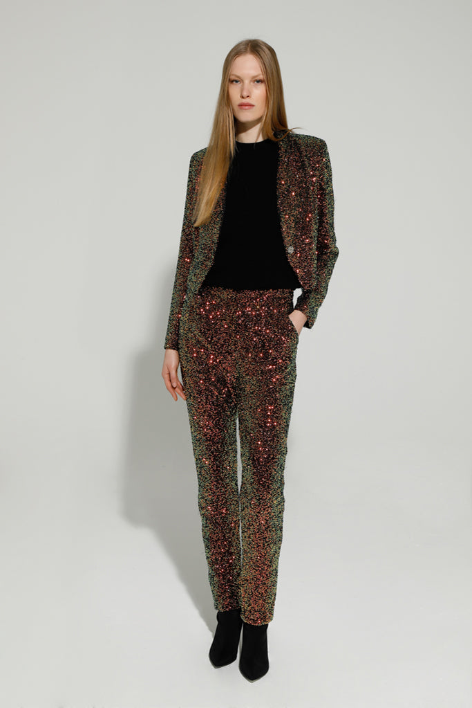 Enter the party in style with the BJORN Sequin Cropped Jacket. Features include a lapel collar, single button fastening and a fully lined interior for maximum comfort. Perfect for special occasions or when you just don't want to blend into the crowd! Complete the look with the matching BENNY Trousers.