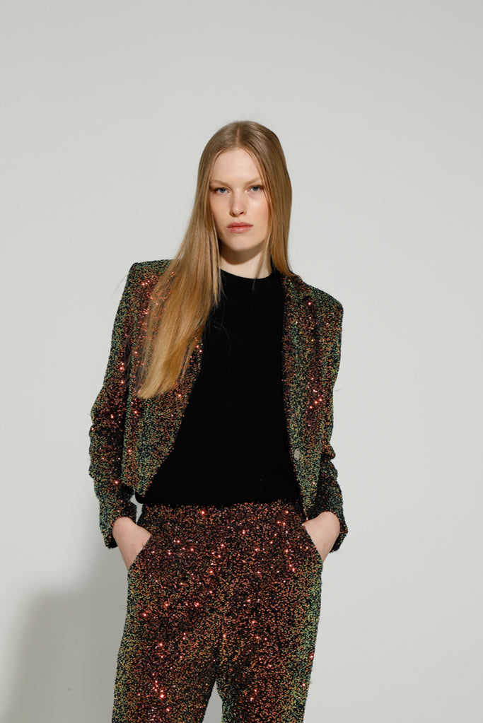 BJORN SEQUIN CROPPED JACKET (EMERALD/BRONZE)
