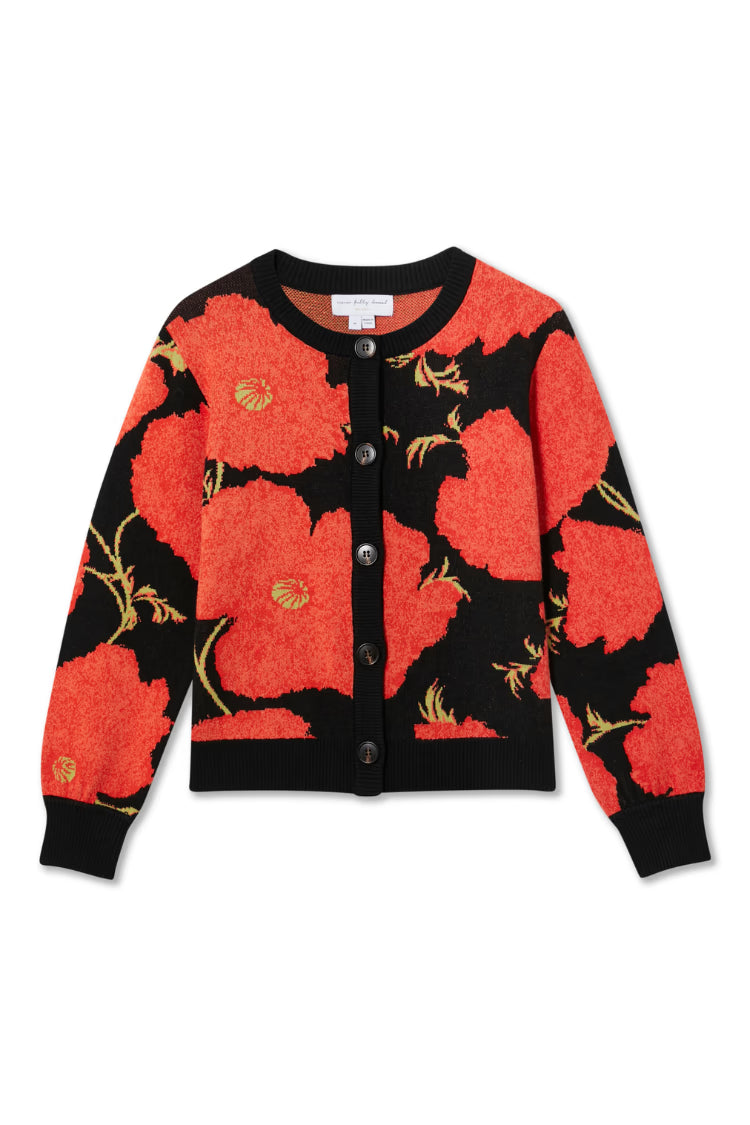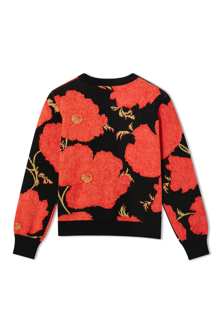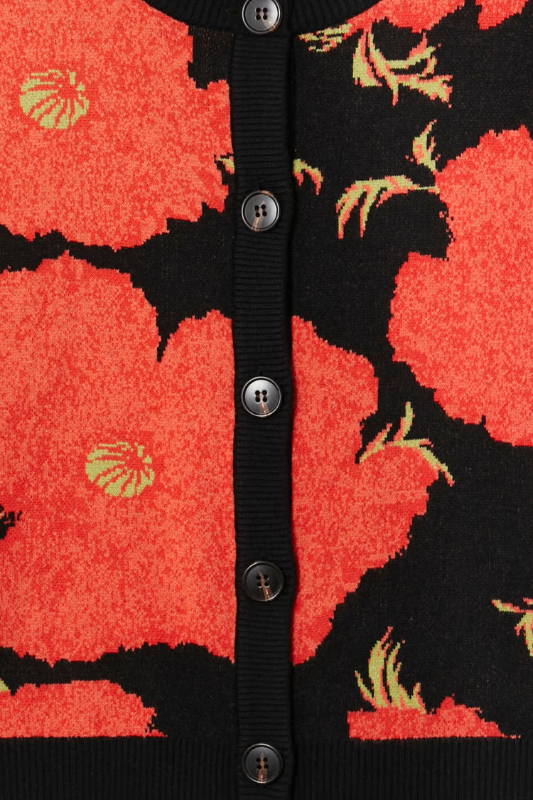 The weighty, soft touch knit fabric makes this cardigan from Never Fully Dressed feel so luxe! A black base with the iconic, bright and bold poppy print. With wide sleeves for a slightly oversized, boxy look and baby rib cuff and hem detailing, pair this cardi with some leopard jeans or thrown over the matching mesh dress for a classic day to night outfit.