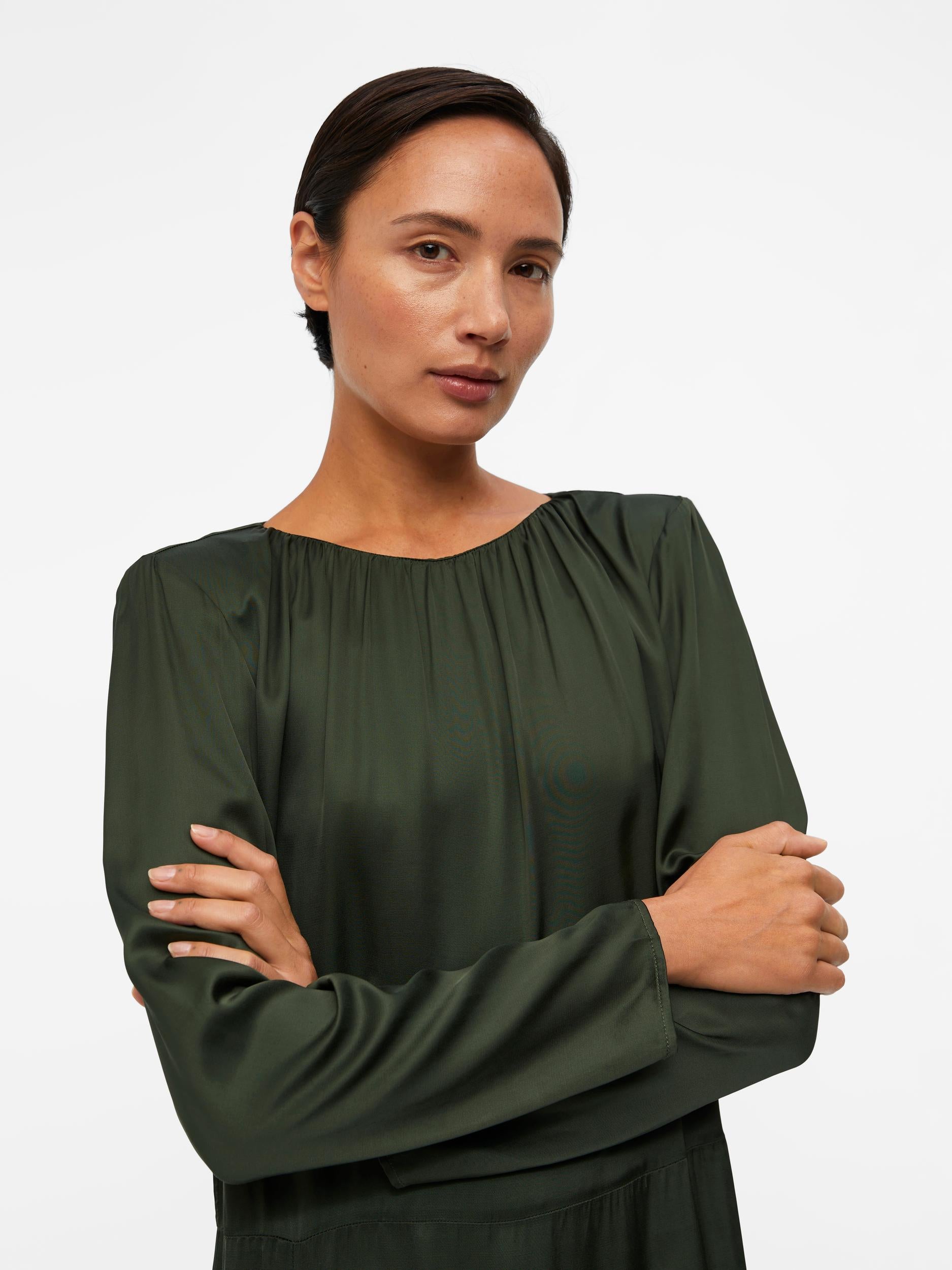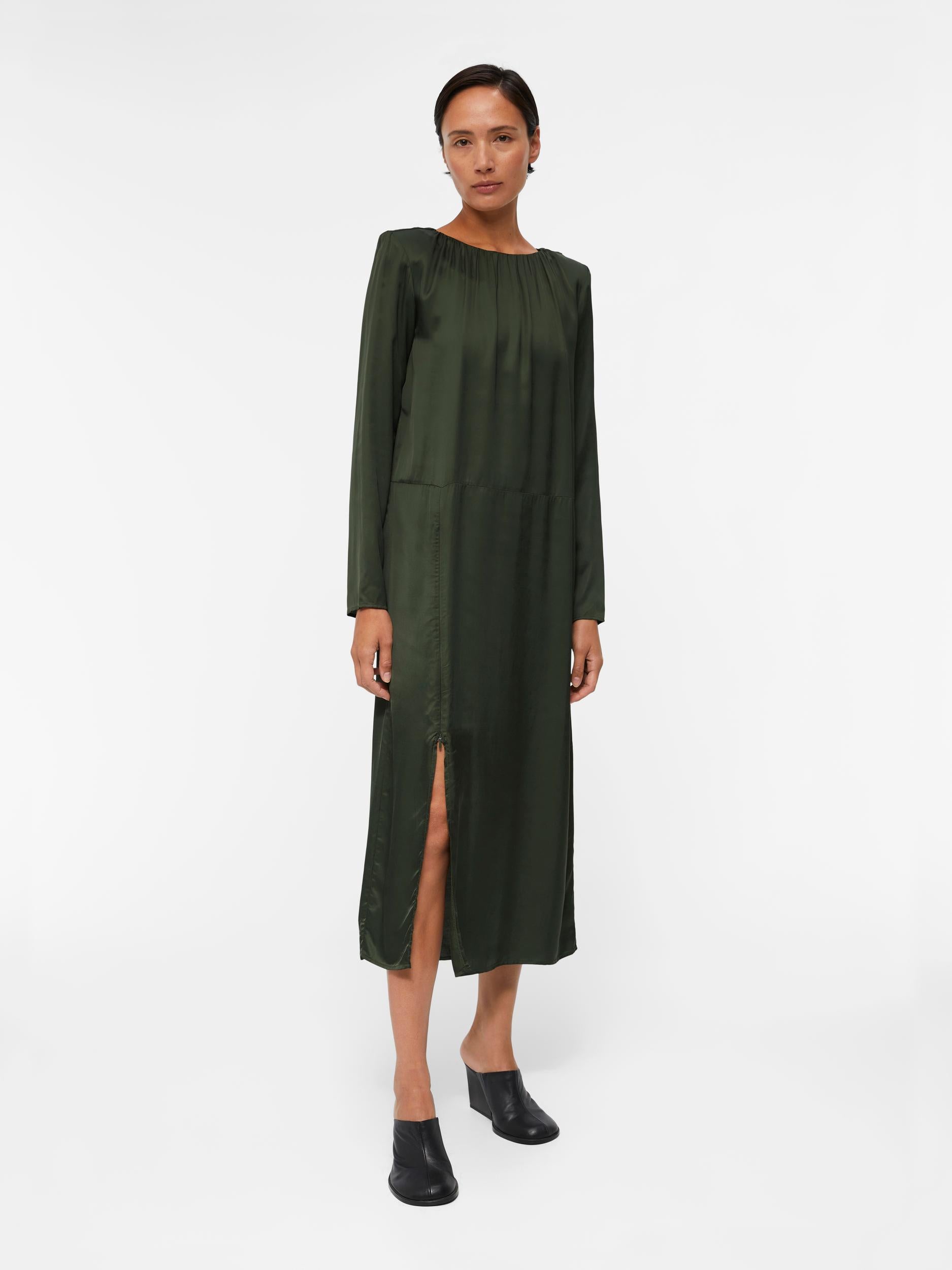 The BOEN dress offers effortless comfort and contemporary style. Featuring a loose fit, o- neckline, long sleeves, and maxi length, this dress is perfect for any occasion. Padded shoulders, single button closure on the back and knee length slit enhance the convenience and style. Crafted with quality materials, this dress ensures a flawless look.