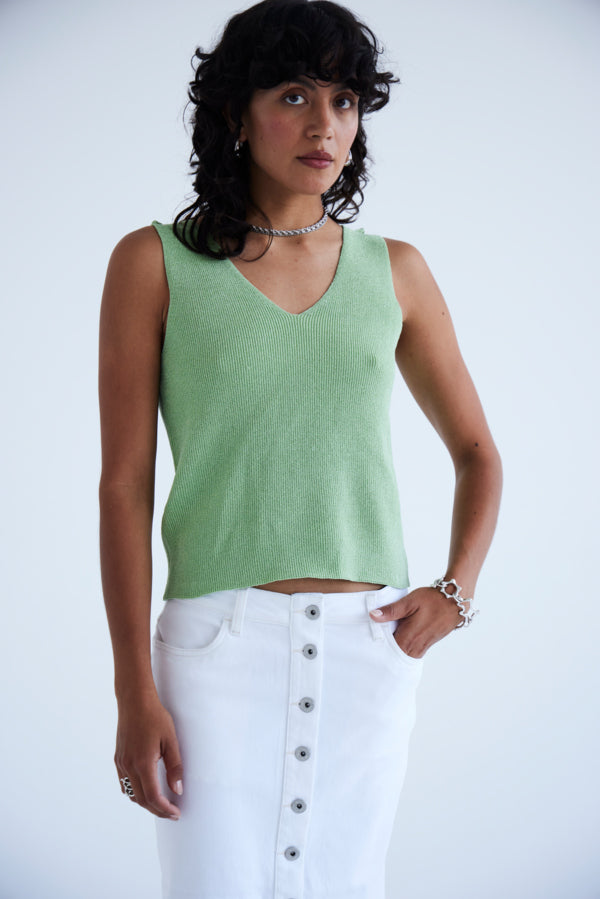 The CAMA top features a stylish V-neck design, shimmering glitter detailing, a comfortable knit material, and a unique collar detail on the back. Perfect for adding a touch of glamour to any outfit while still ensuring comfort and style. Upgrade your wardrobe with this versatile and chic top.