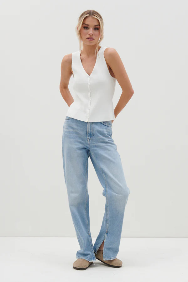 CASEY SLEEVELESS BUTTON TOP (CREAM)