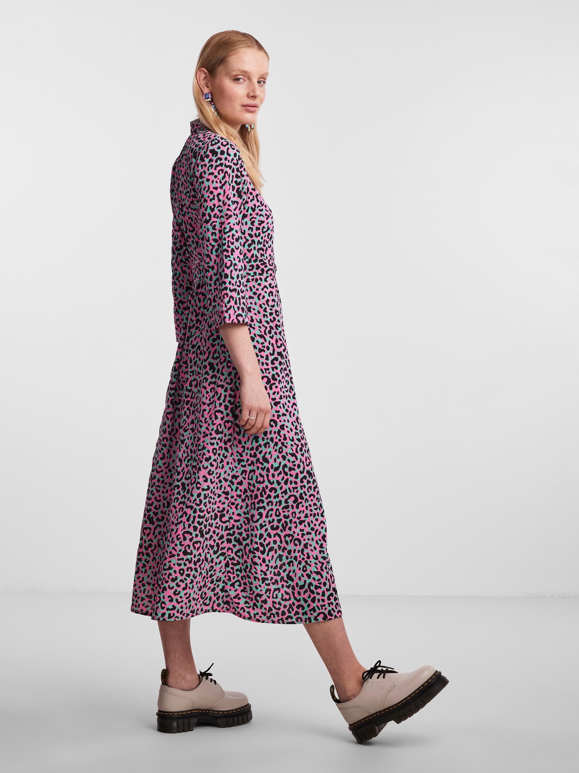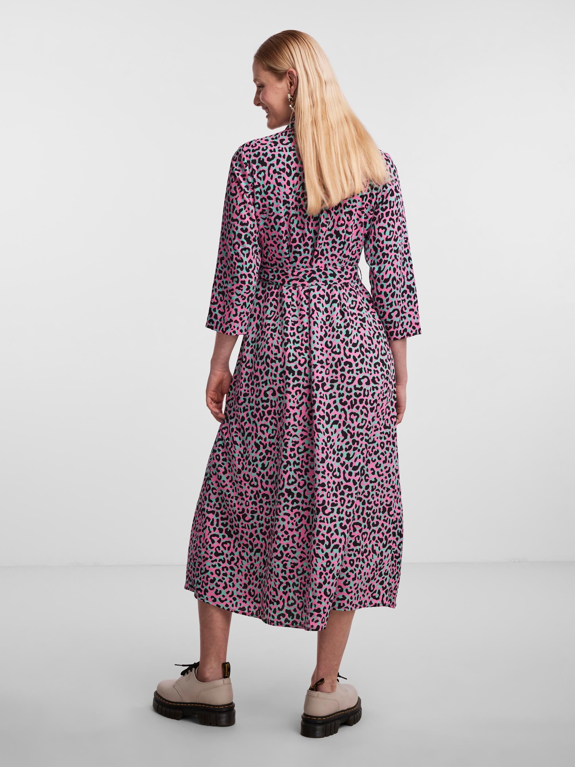 How cute is this shirt dress by Pieces featuring a regular collar, Button-up front, full length sleeves, Tie belt at waist, Midi length and Regular fit