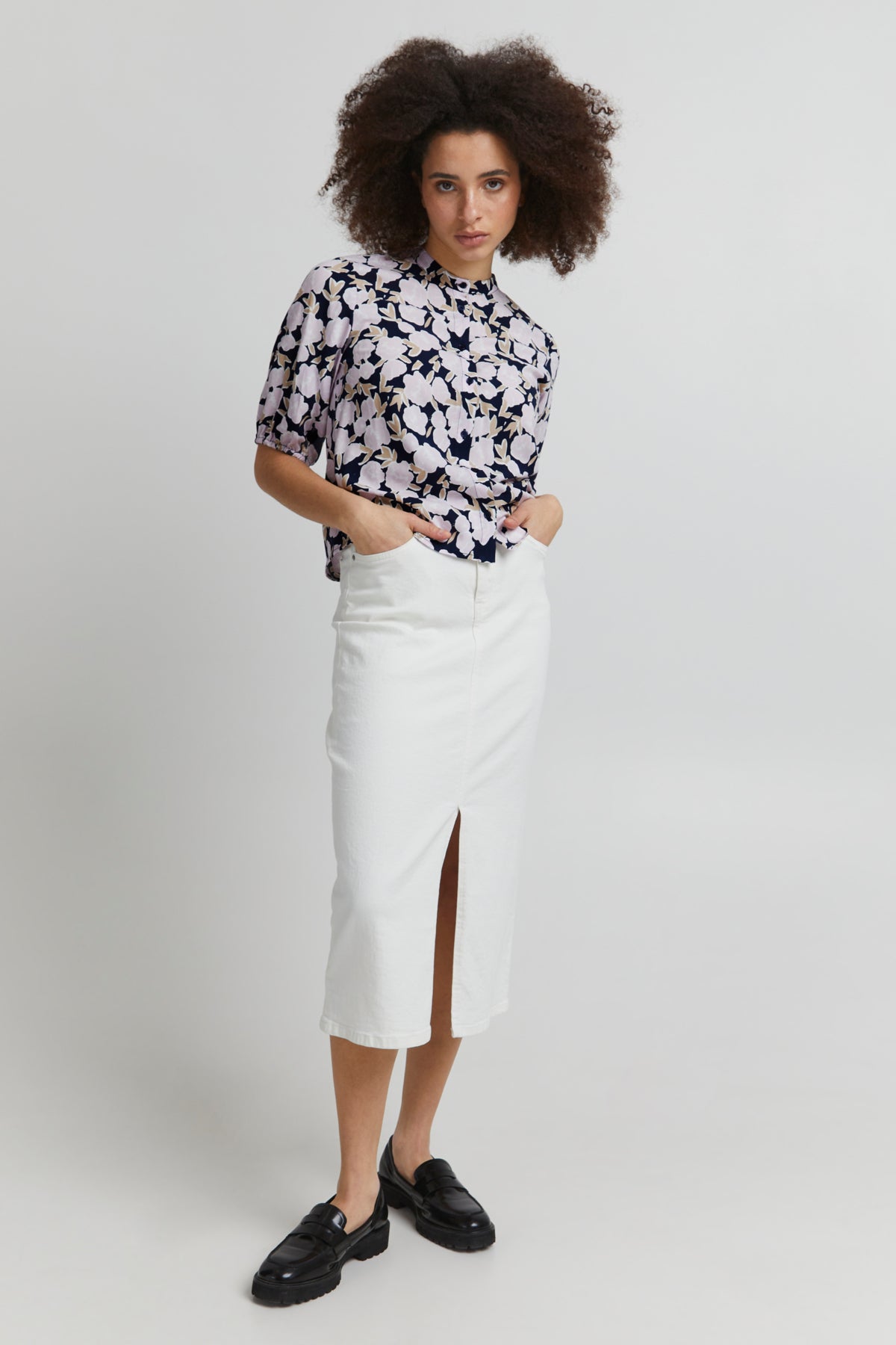This cute shirt features a grandfather collar, floral print and elasticated short sleeves. We love it over white jeans and a sandal.
