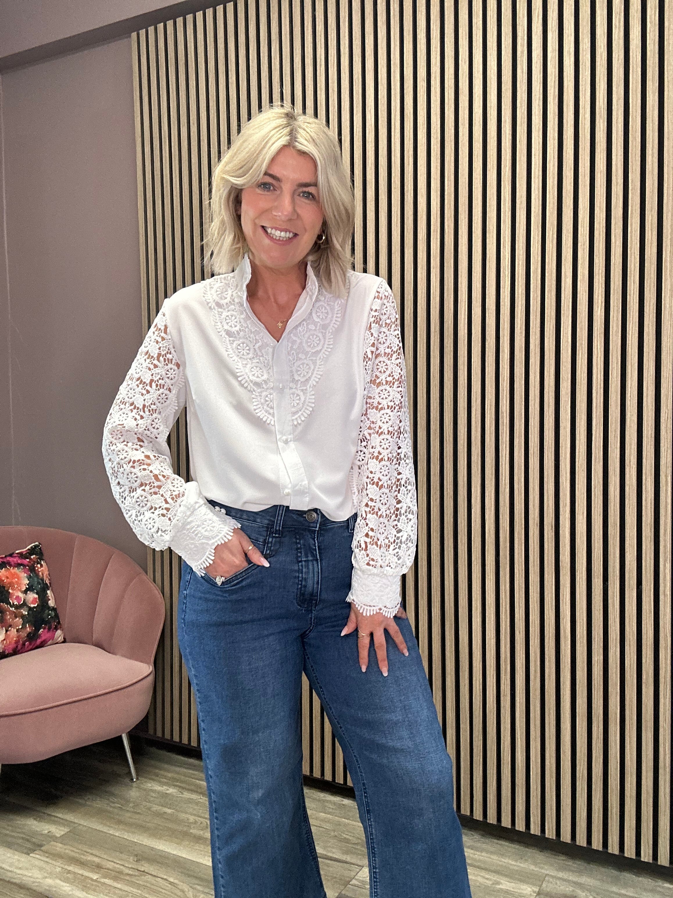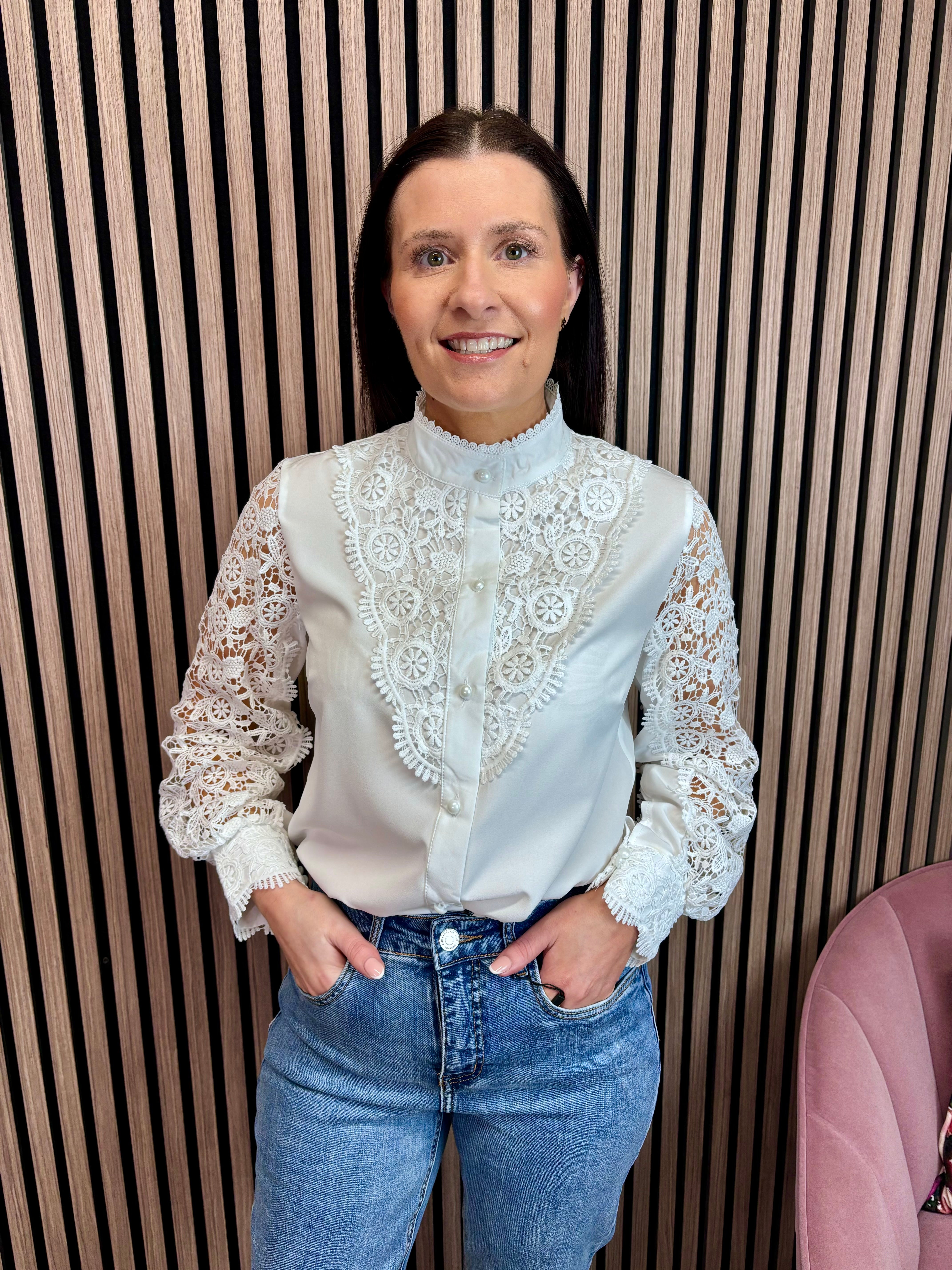 Chloe High Neck Lace Detail Shirt (White)