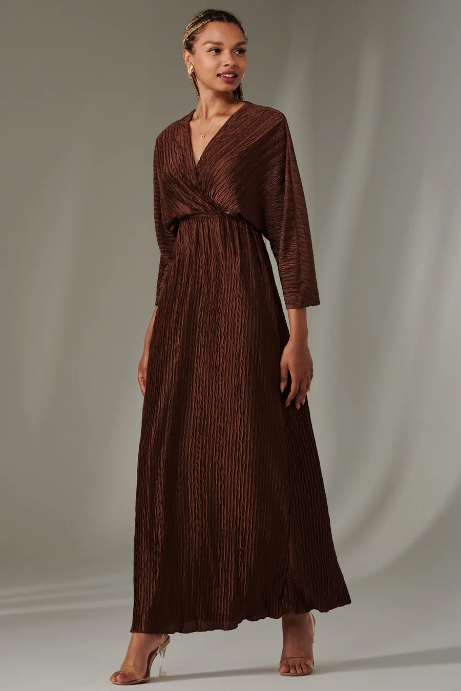 Chocolate Ruffle Hem Chiffon Maxi Dress