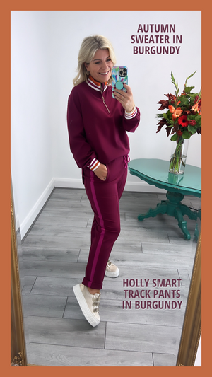 This zip collar sweater can be mixed and matched with the entire the oh molly collection featuring the dipped hemline at the back and the signature Oh Molly cuff. A versatile piece that can be worn as a set with the Holly pants or with jeans. Shop the entire Oh Molly collection here.