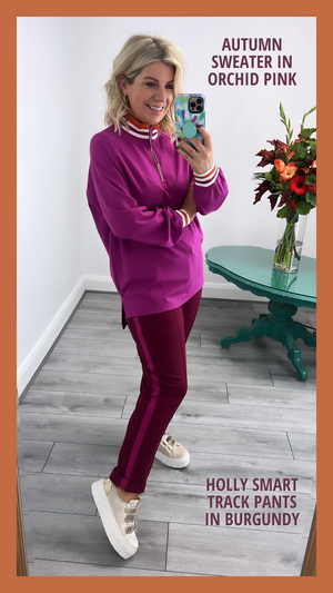 This zip collar sweater can be mixed and matched with the entire the oh molly collection featuring the dipped hemline at the back and the signature Oh Molly cuff. A versatile piece that can be worn as a set with the Holly pants or with jeans. Shop the entire Oh Molly collection here.