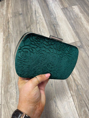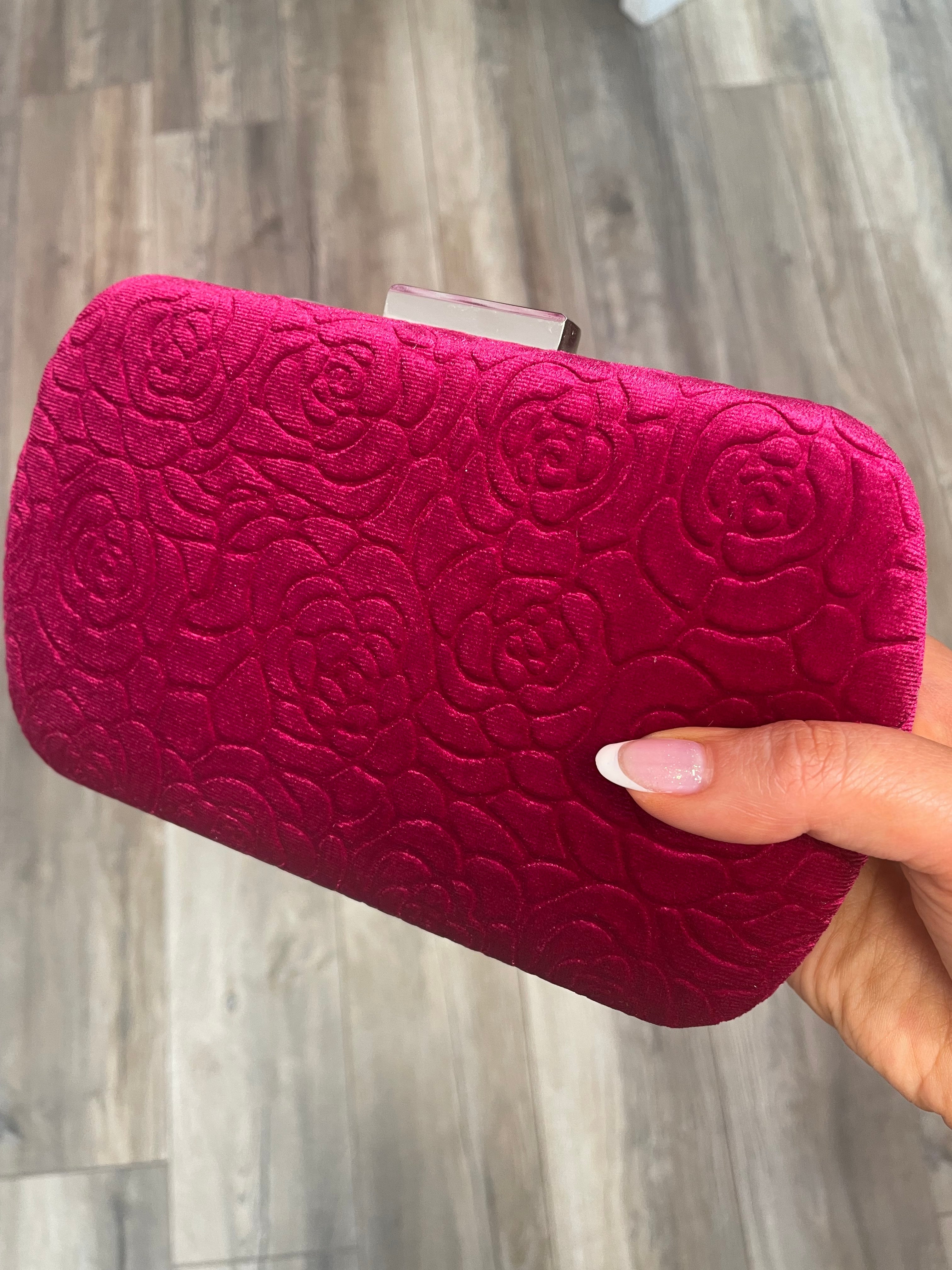 With its finger firmly on the pulse of current trends, this clutch is the essence of class with its embossed velvet and silver toned hardware. A silver toned strap can be popped inside when not in use.