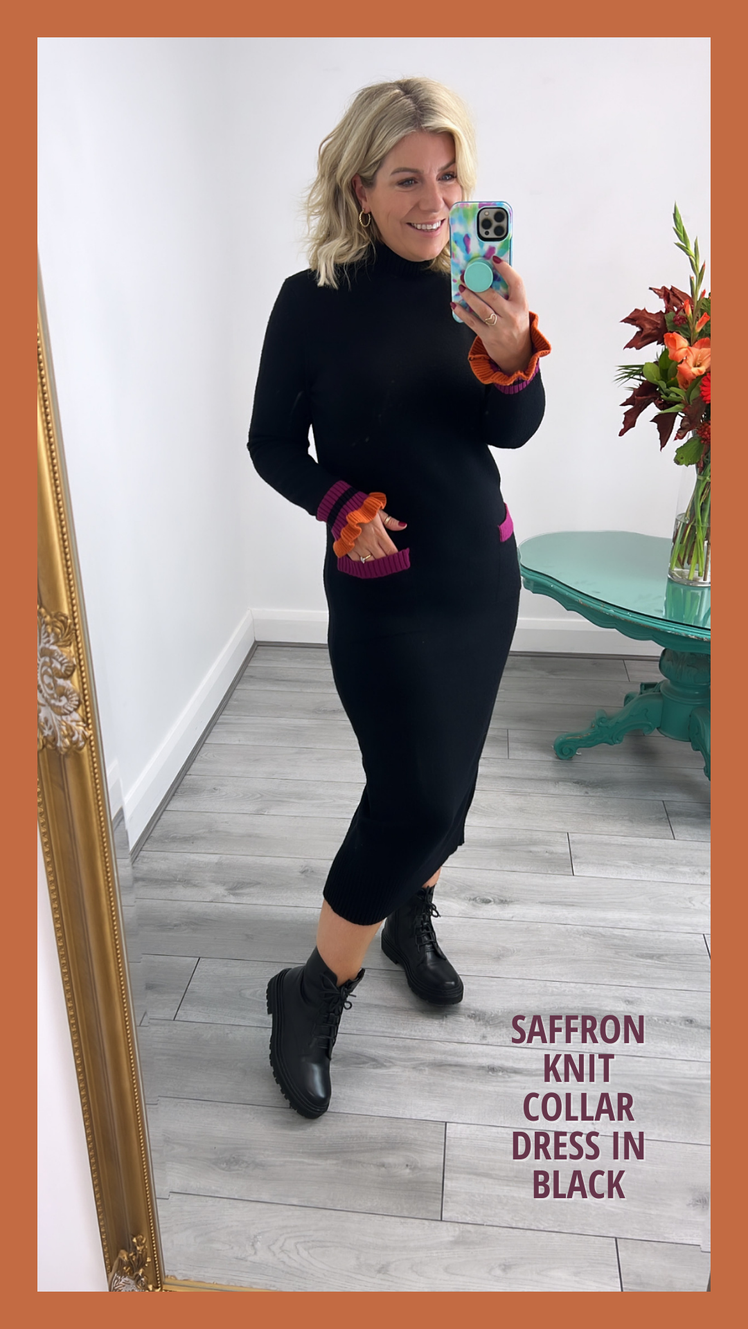 This knitted midi dress features front pocket detail and the signature Oh Molly cuff with a twist. It can be styled with tights and boots for a casual look or worn with any other piece from the Oh Molly collection. Shop the entire Oh Molly collection here.