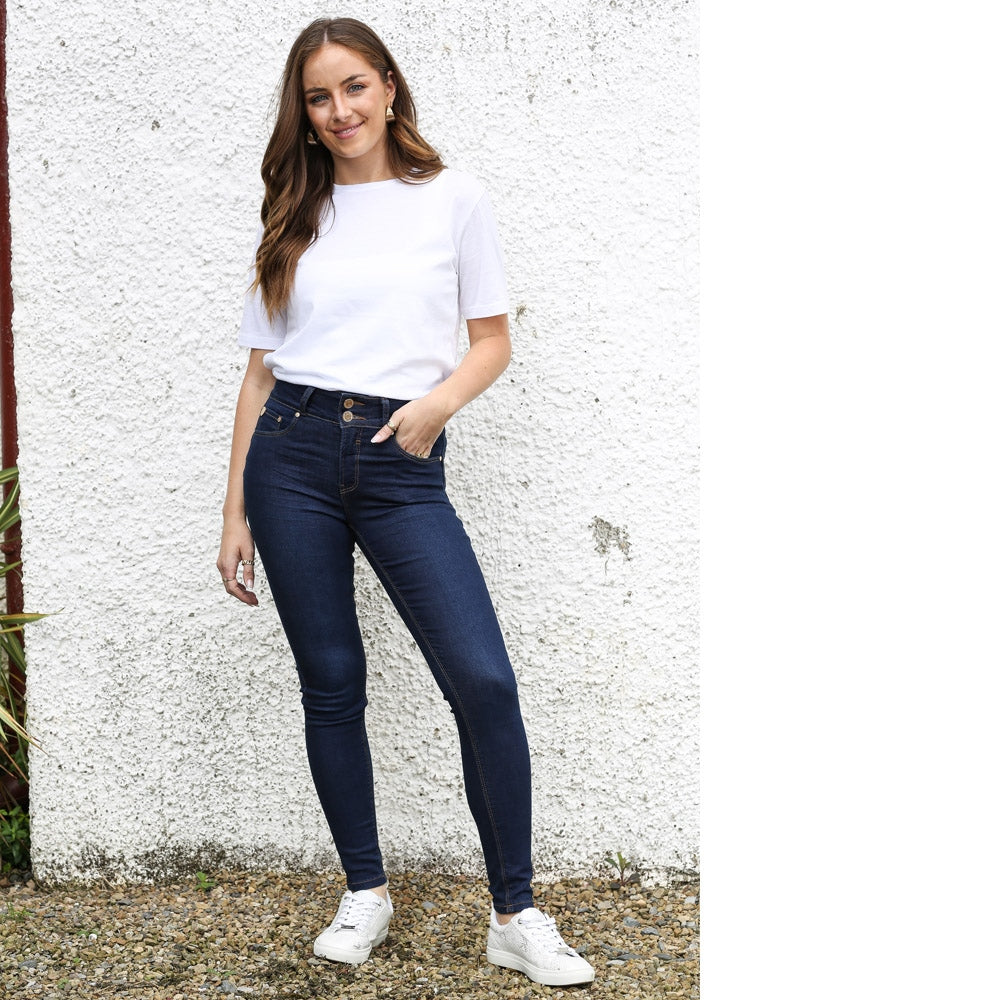 The DERRY Skinny Jean is a perfect blend of contemporary style and flattering fit, designed for women seeking sleek and trendy denim. Crafted in a rich dark indigo shade, these jeans exude a timeless elegance suitable for various occasions. The skinny fit and high waist of these jeans accentuates the natural curves, providing a tailored and chic silhouette.