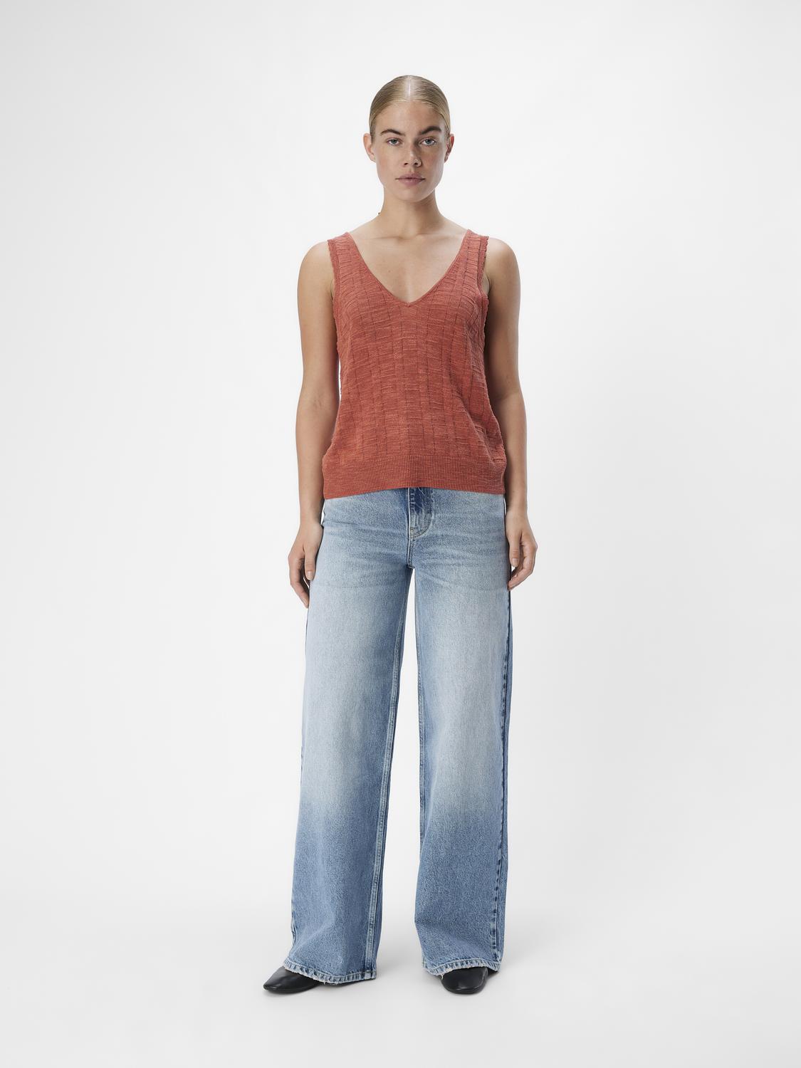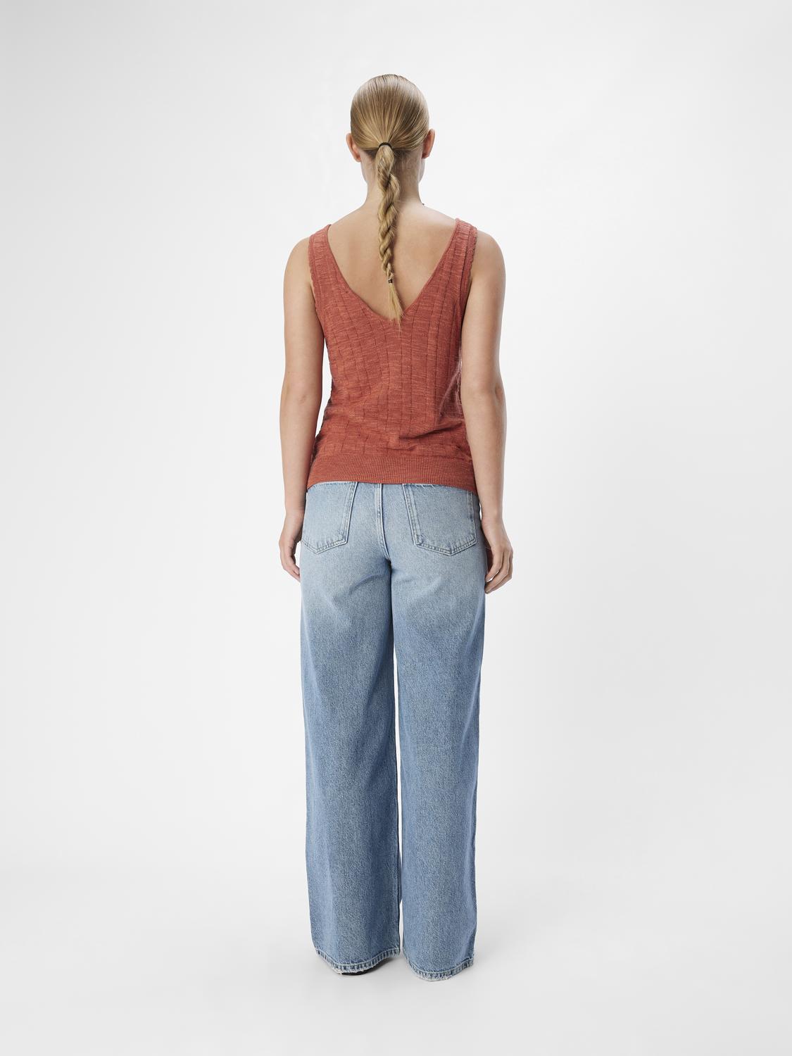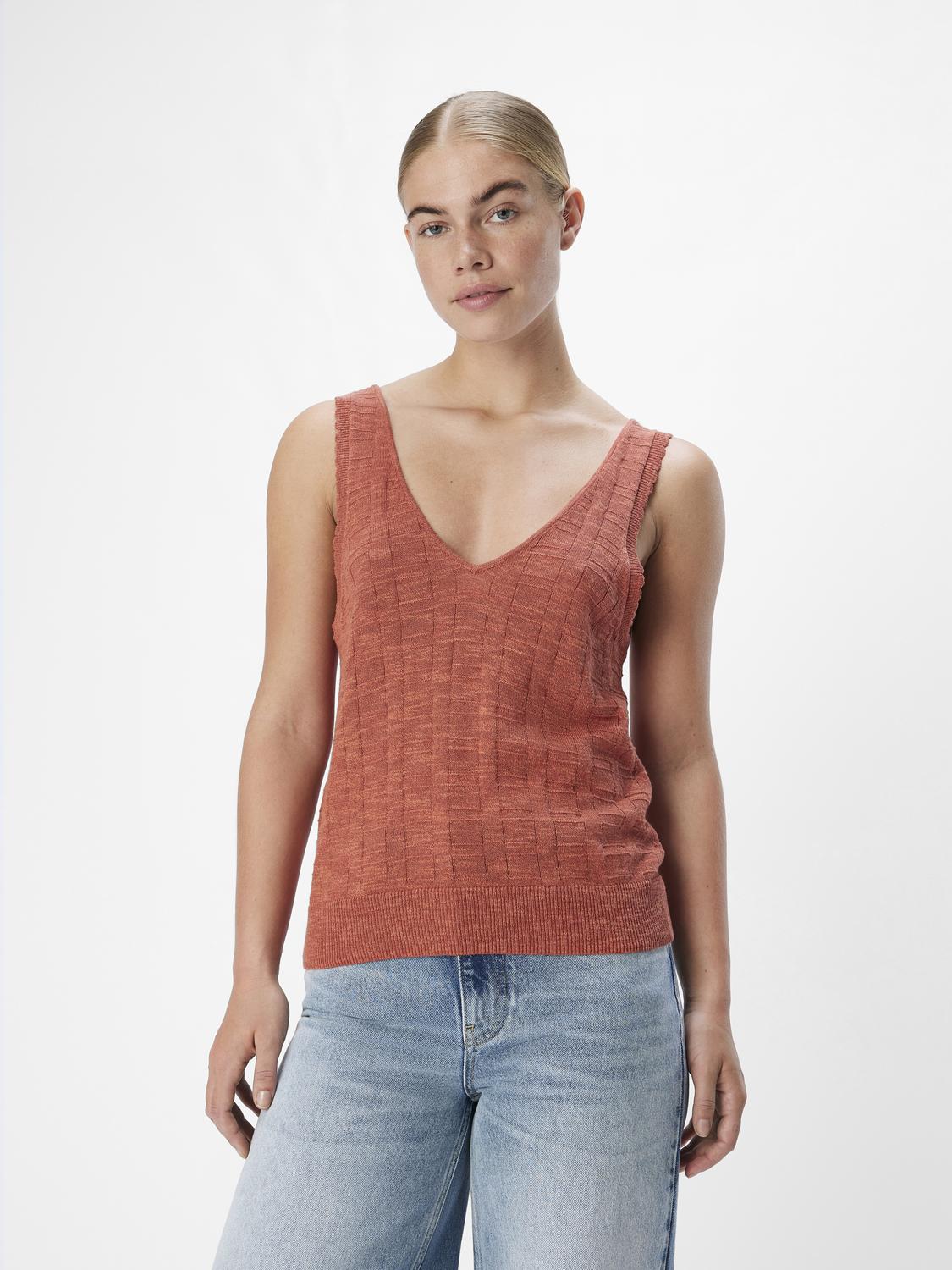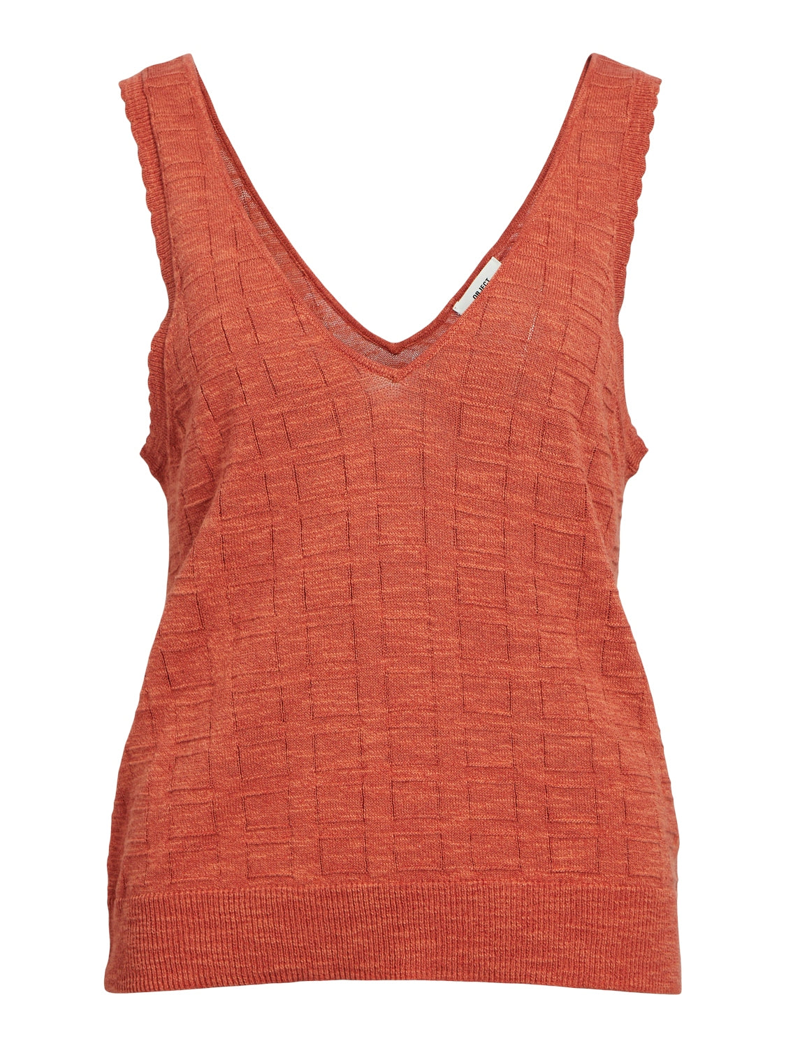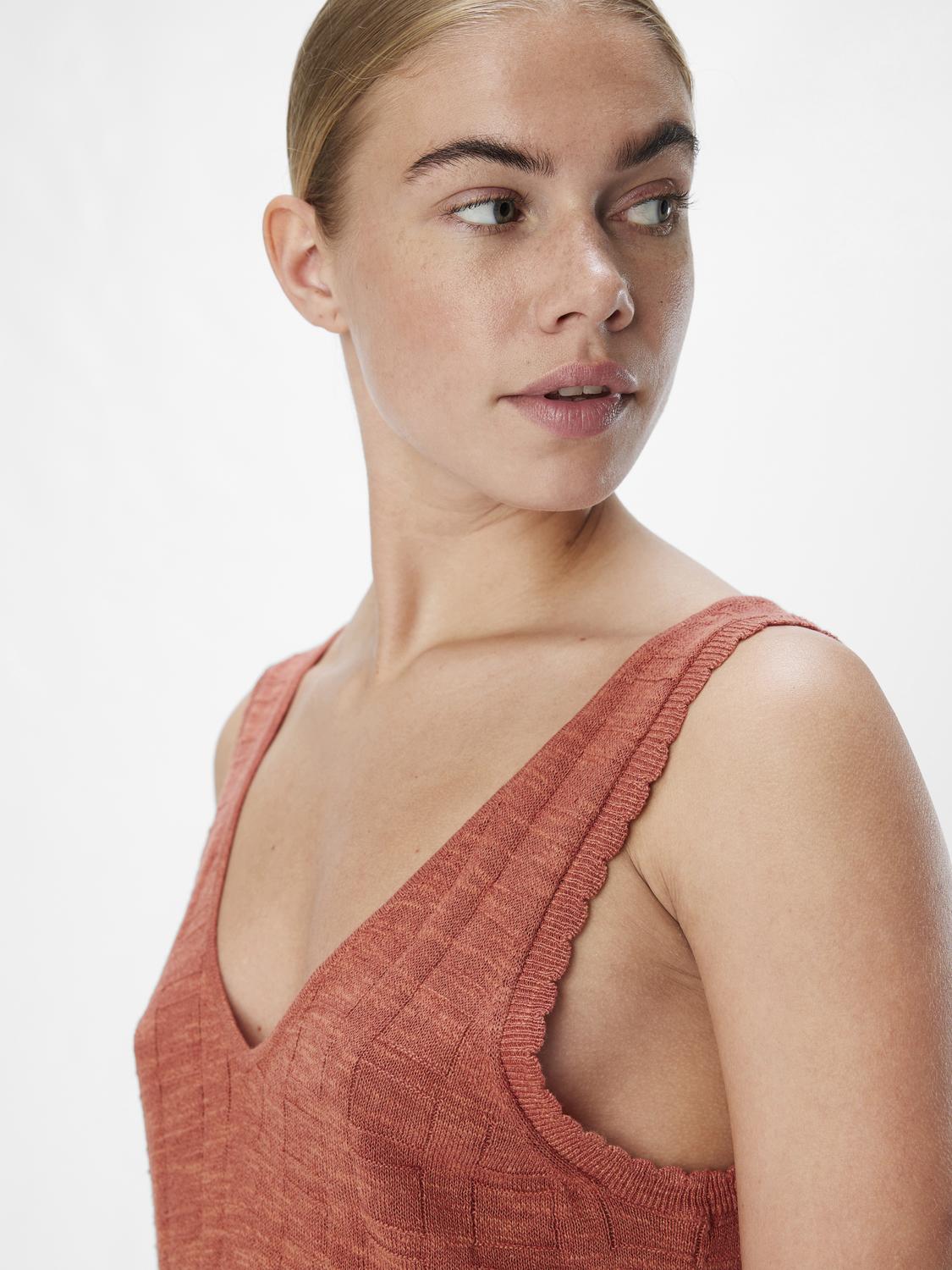 Created from a lightweight knit fabric, the Dimka Sleeveless Knit Top features a flattering v-neck design both front and back. The delicate scalloped sleeve detail adds a touch of elegance to the piece, while the subtle pattern adds an eye-catching element. Perfect for dressing up or down.