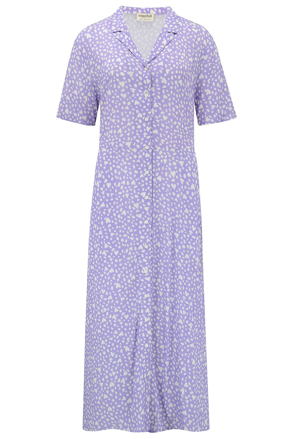 Eileen Midi Shirt Dress- Animal Pastel Love Heart (Lilac)