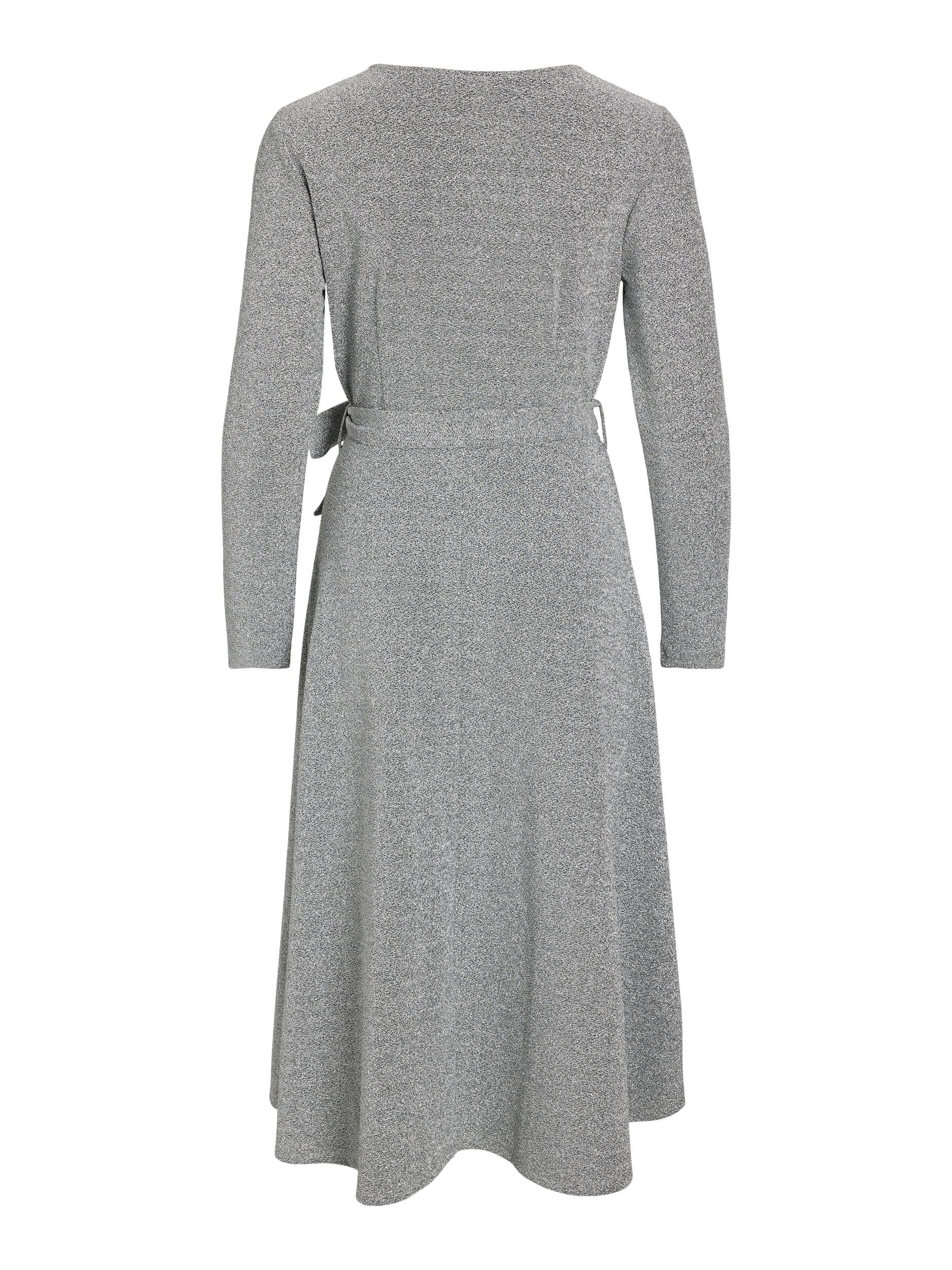 EVA L/S WRAP DETAIL MIDI DRESS (SILVER)