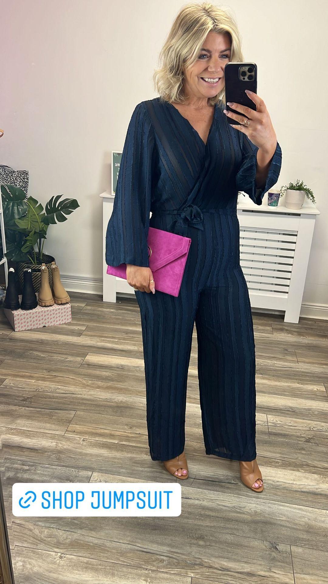 This fabulous jumpsuit by Ichi features a faux wrap V-Neckline with a snap fastener, a belted waist with an elasticated back for added comfort and a wide leg. The ideal piece for laid back summer days.