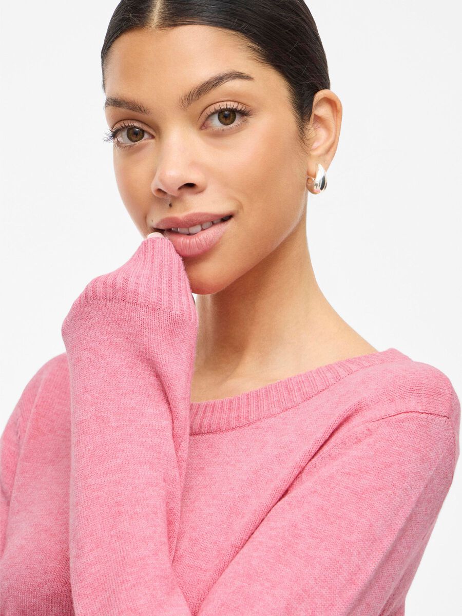 A classically simple round neck jumper with a soft stretchy fabric and ribbed trims. This light weight knit is perfect for that light yet cosy layer.