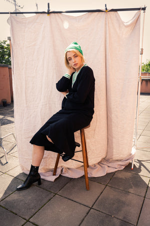 This is a sweater dress that can be worn oversized or more fitted depending on the look you are going for. With a ribbed V-Neckline and Oh Molly's signature cuff detailing, this dress is a perfect comfortable but dressy piece to add to your wardrobe.
