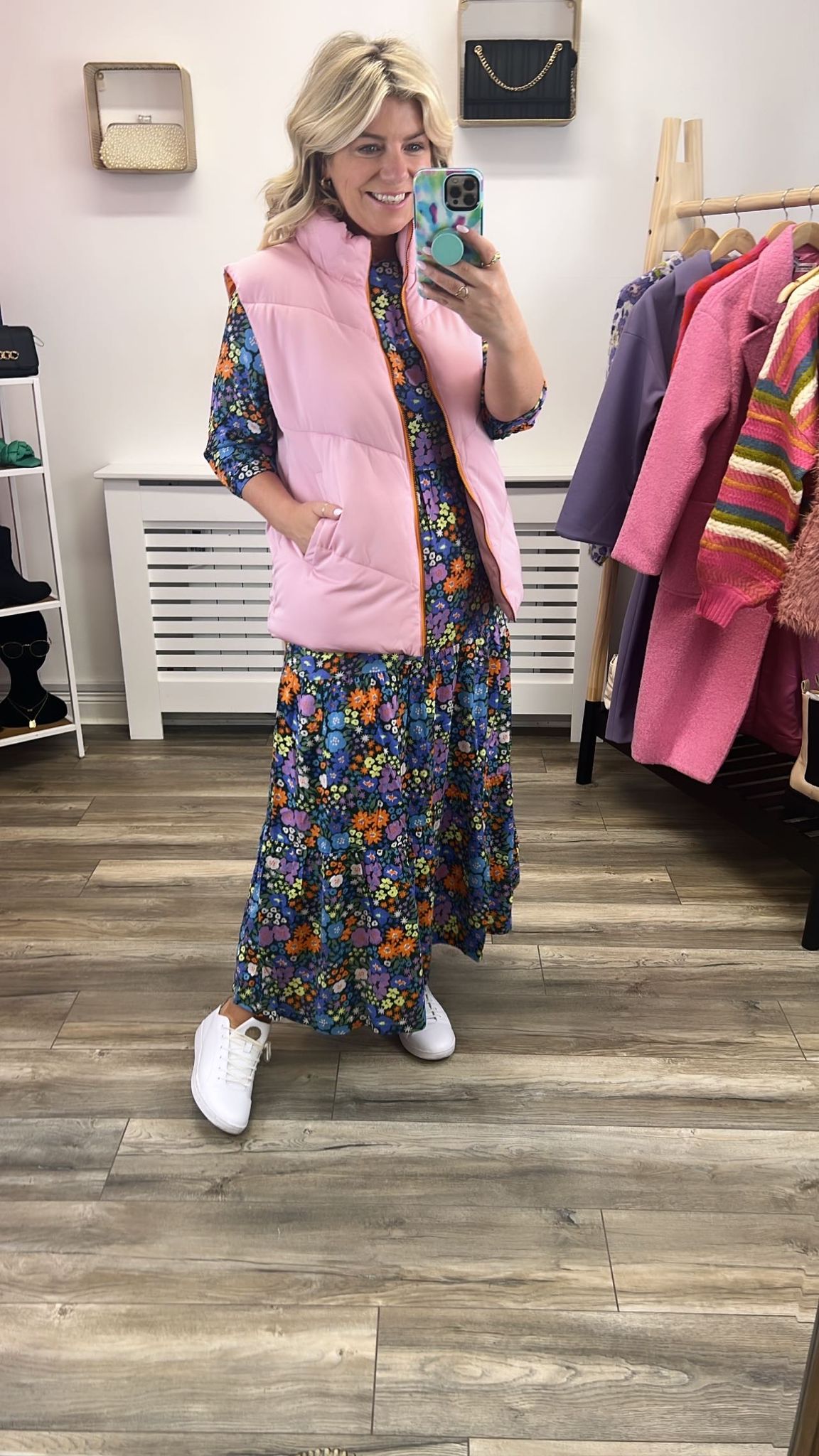 This regular length pink gilet features a lovely pop of orange on the zip detail with two size pockets. Its water repellent bionic finish makes it an ideal layering piece.