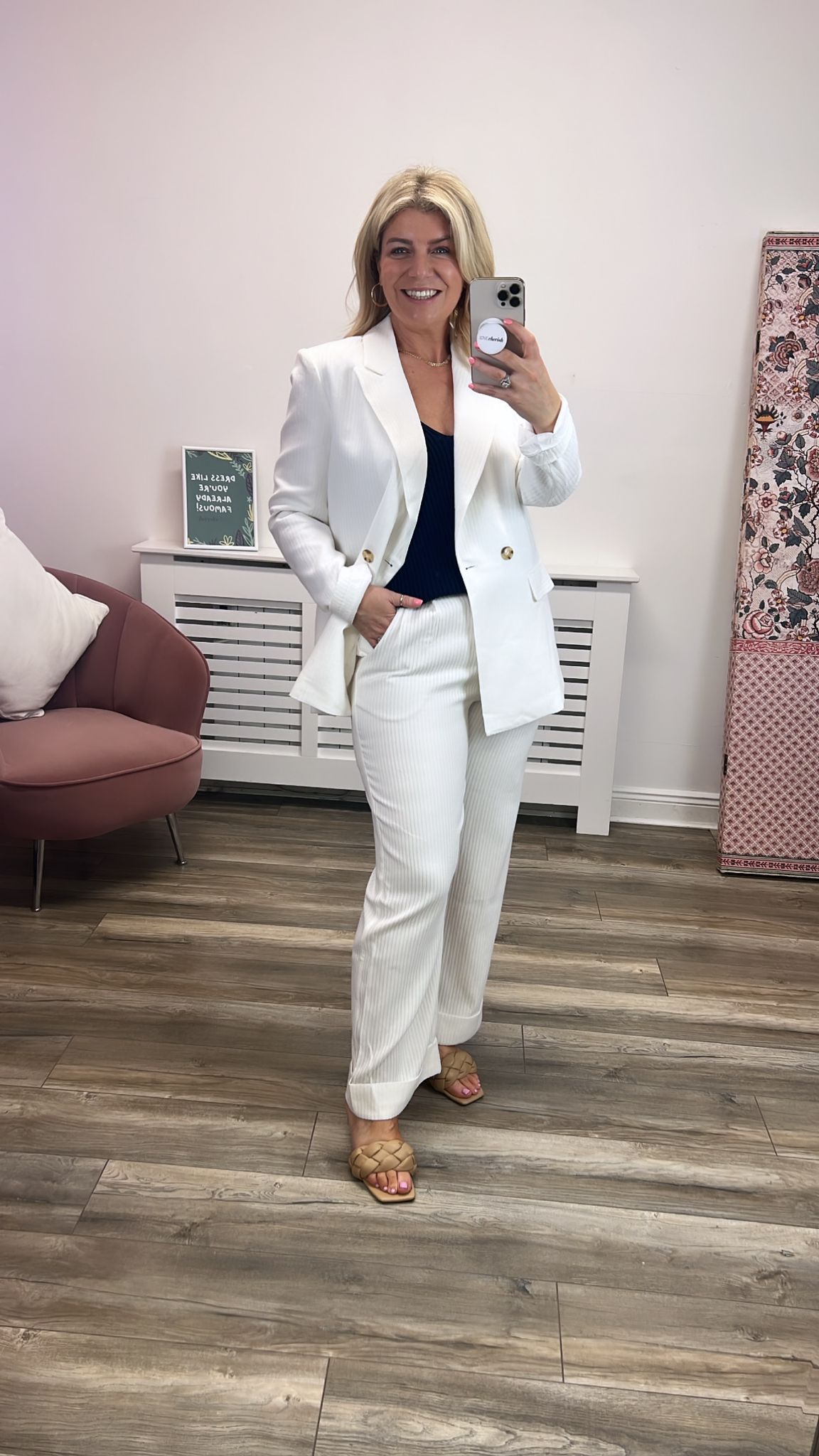This Long sleeve blazer by FRNCH is amazing! Featuring notched collar, 2 pockets with flaps and a 2 button closure. Finish the look with our matching Palmer Trousers.
