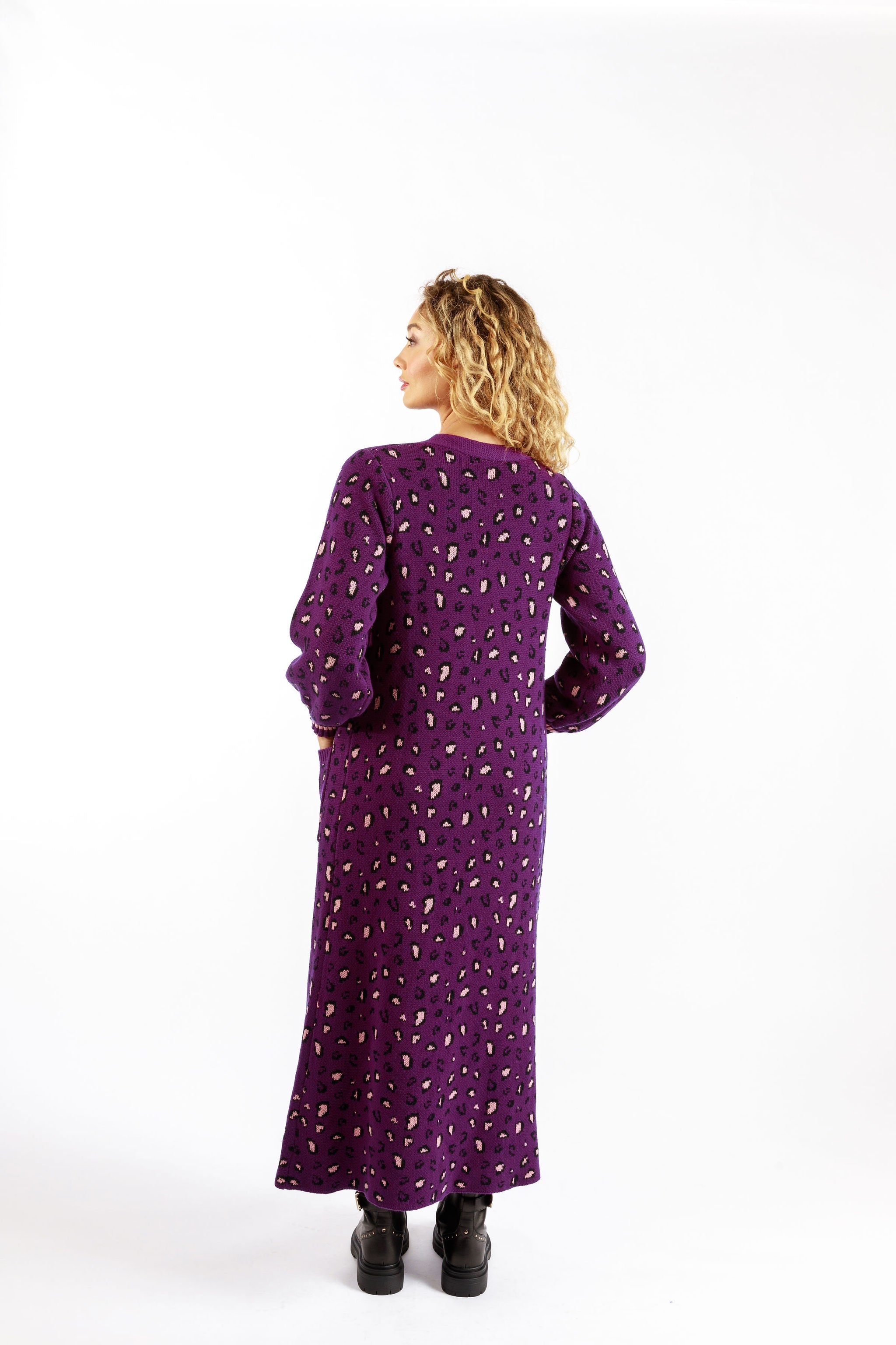 The perfect longline coatigan to add to your autumn/winter wardrobe. The Garnet is open fronted with two pockets and features the Oh Molly signature imperfect heart print in pink and black on a rich purple base. Style with the Pearl top and your favourite denims for cosy casual vibes. Due to the nature of this material, it may bobble over time. This can easily be removed with a bobble remover.