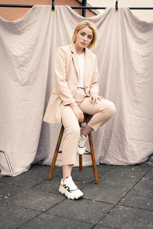 These trousers were designed by Maeve with comfort in mind, featuring an elasticated waist detail and zipped front. Wear with Oh Molly's Michelle Blazer for an outfit that will make you feel powerful or mix and match with any of the Oh Molly collection for a more casual vibe.