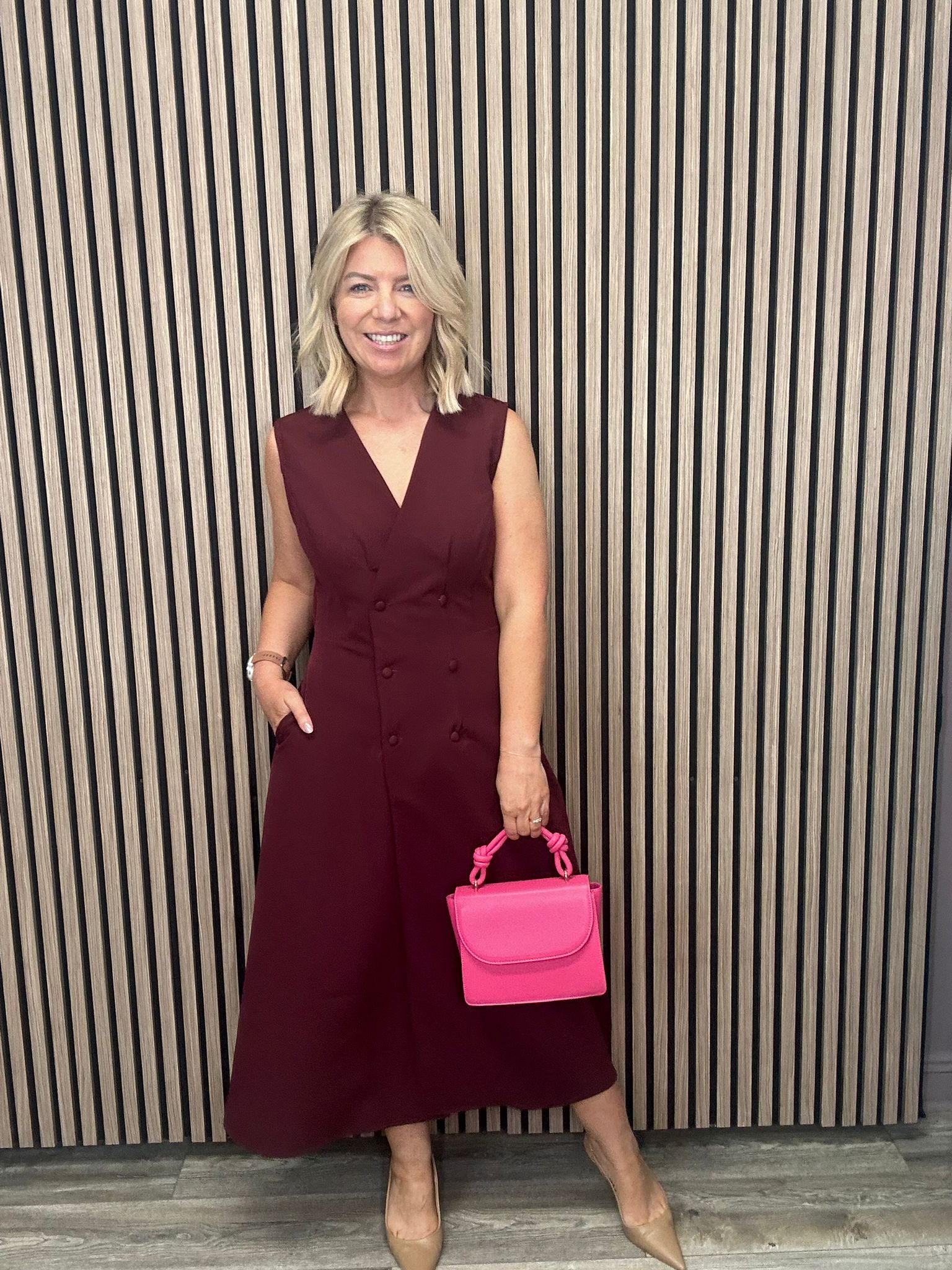 Hazel Tailored Sleeveless Midi Dress (Wine)