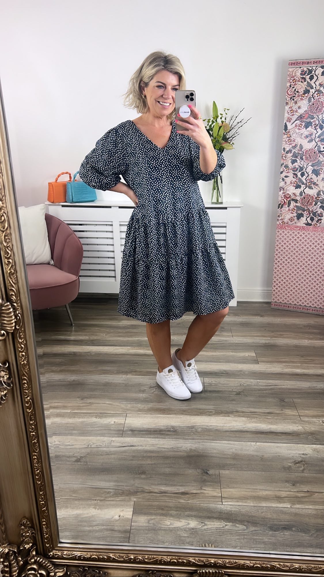 We adore this loose fit smock dress! Featuring 1/2 length sleeves, cuffs with elastic binding, v-neckline. Wear with tights and boots or your favourite white trainers.