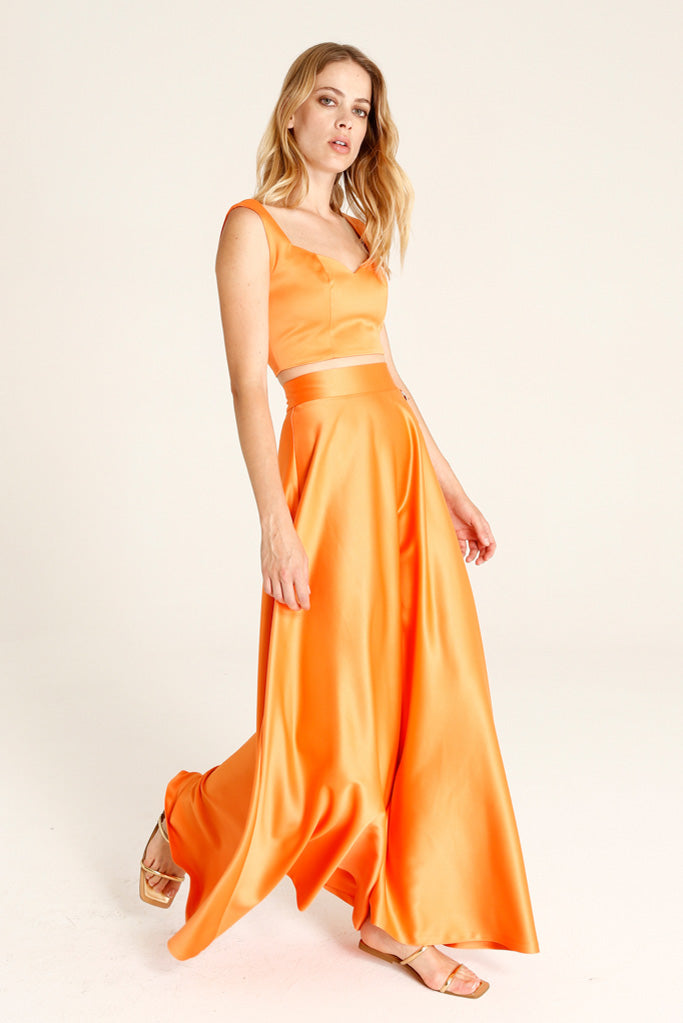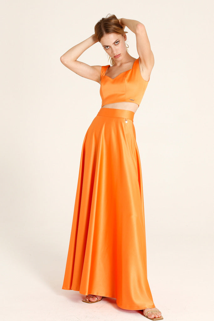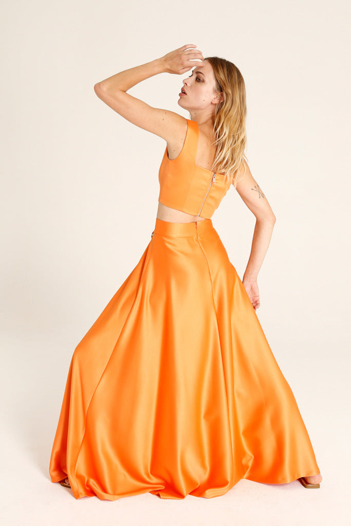 How fabulous is this long satin full skirt. Featuring a high fitted waist and large volume on the length to the feet.