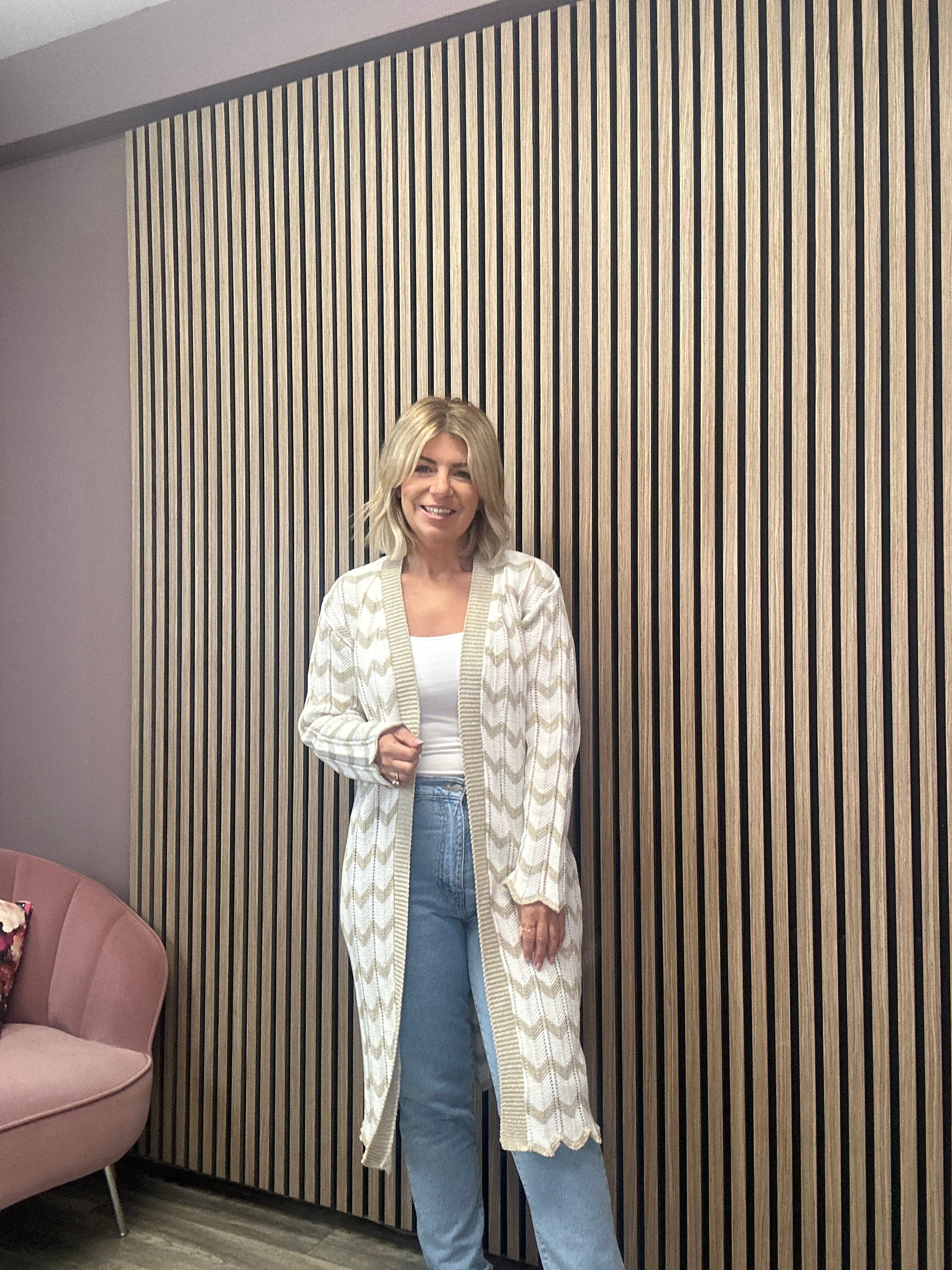 Ingrid Crochet Gold Chevron Cardigan (Gold/White)