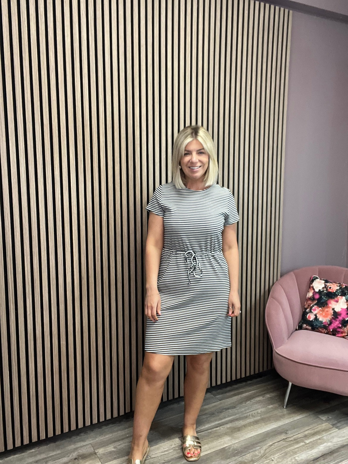 Introducing the versatile Jade Short Sleeve Dress, the perfect addition to your summer wardrobe. Whether it's for everyday wear or a day at the beach, this dress is a must-have. With a round neckline and adjustable string belt, it offers both style and comfort.