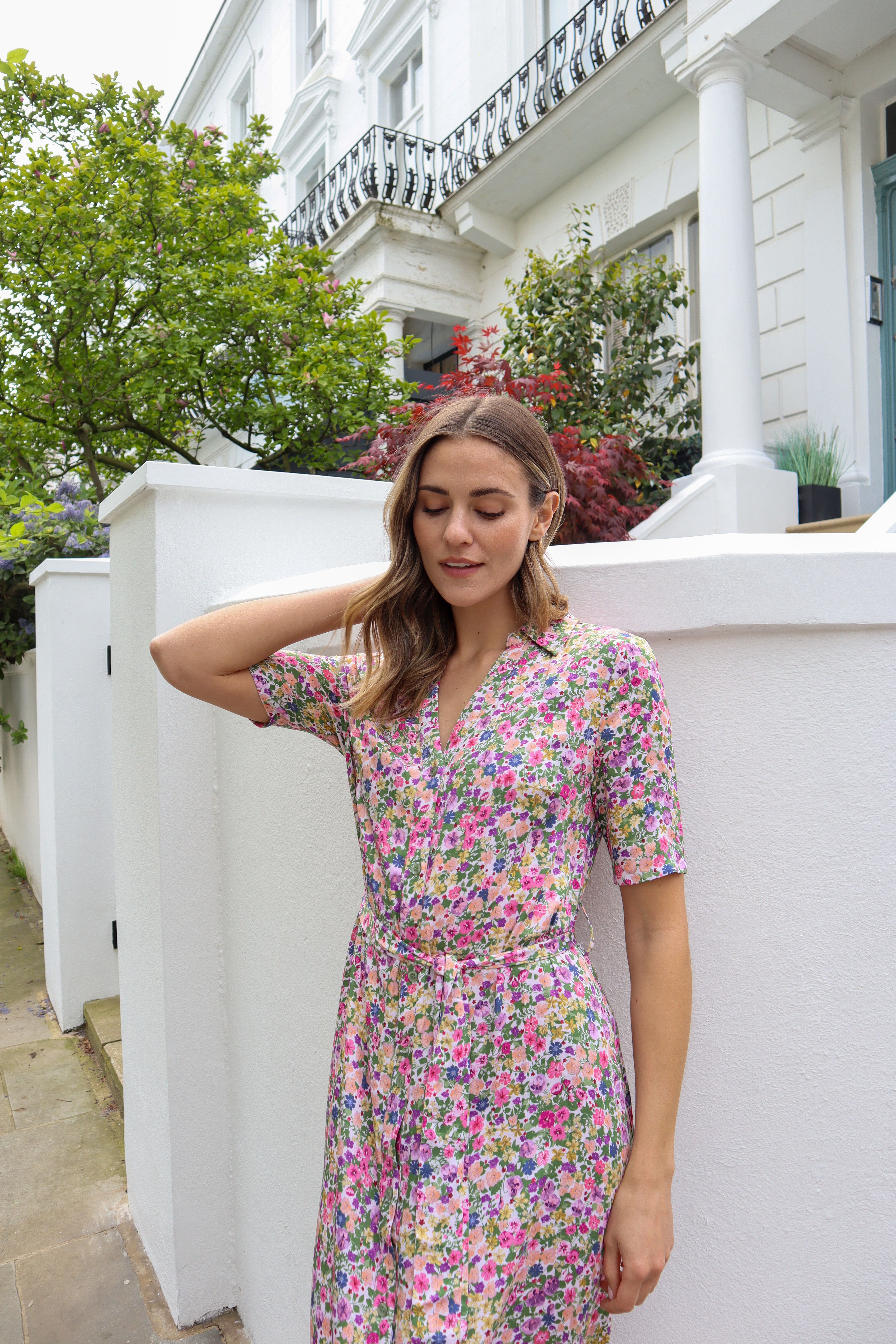 This JADIE long shirt dress features a full button closure for easy wear and a sophisticated collar for a polished look. With short sleeves and lightweight fabric, this dress is perfect for warmer days. Stay stylish and comfortable in this versatile piece.