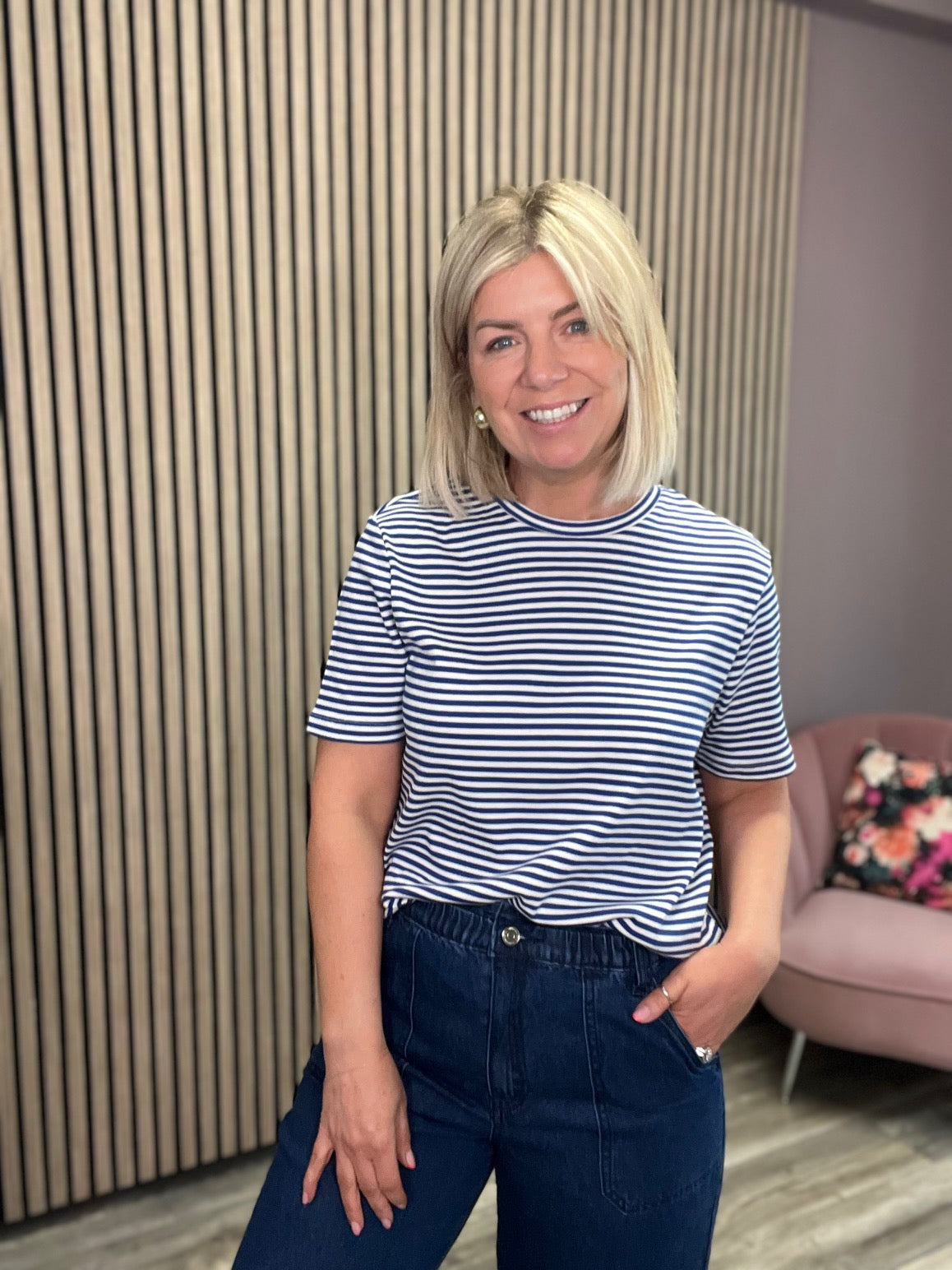 Experience ultimate comfort and style in our Jenna Short Sleeve T-Shirt. Its classic strip pattern and round neck make it the perfect summer essential, crafted from lightweight cotton material for a seamless transition piece.