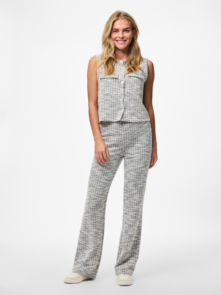 A sleeveless, round neck top with push button fastening and lapelled pockets. The fabric is soft and textured with a black and white colourway. Pair with the matching June flared pants for the cutest co-ord.