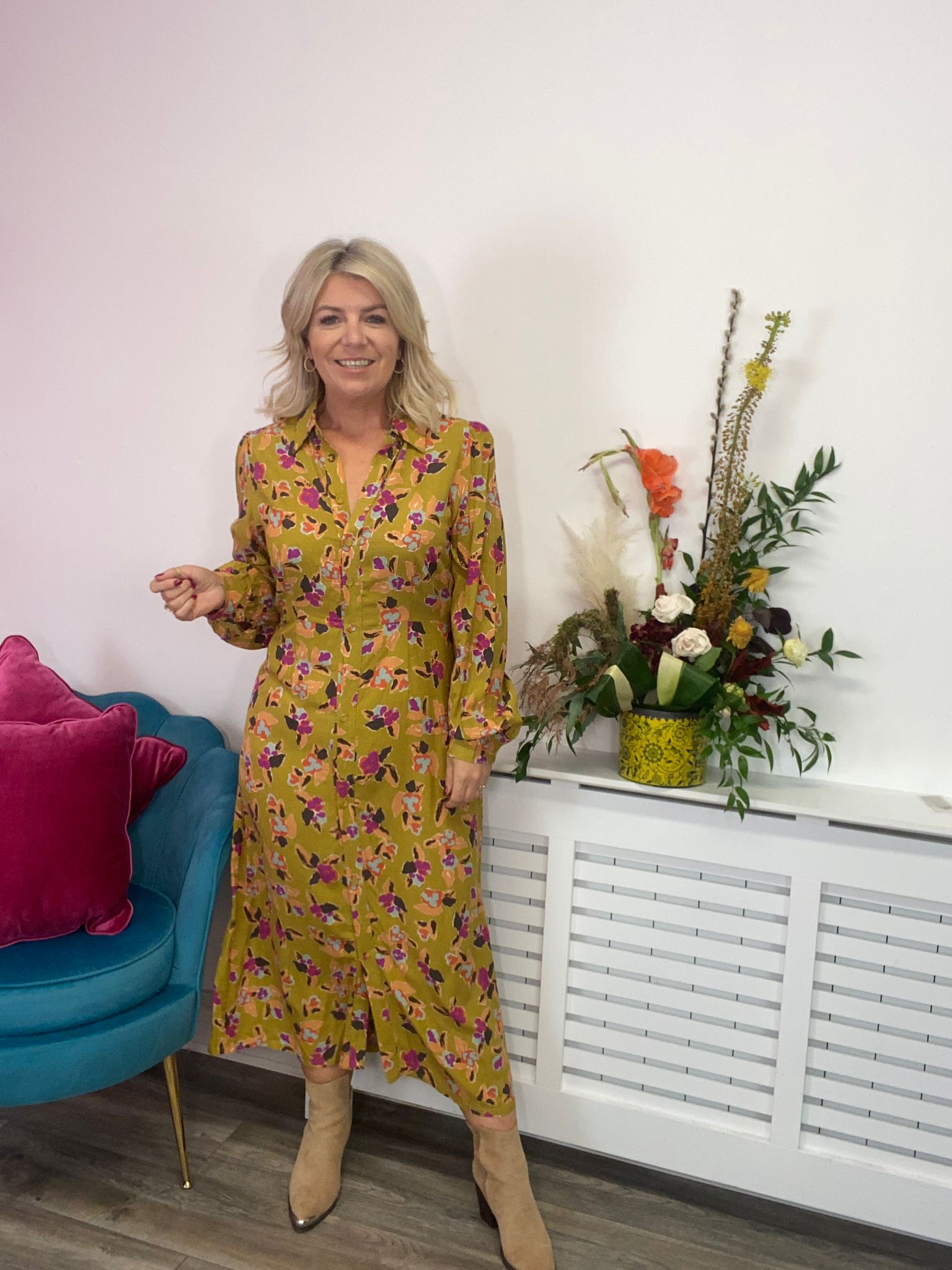 We are weak for this Shirt Dress by FRNCH. Featuring a long sleeve full button up front. style with sandal to finish the look.