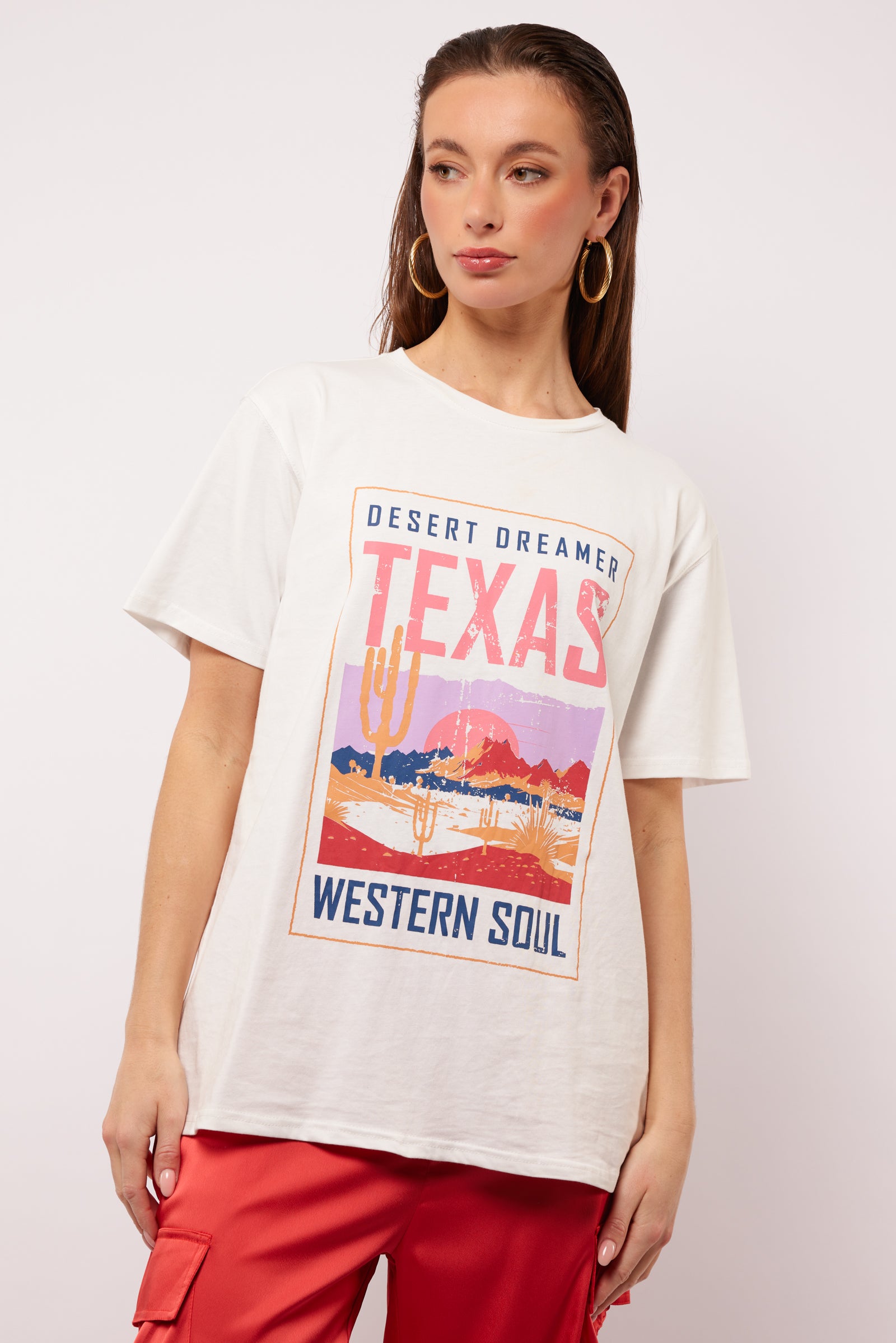 Effortless style meets western vibes met the Kendrick t-shirt. It features a round neckline, western print and a relaxed fit making it the perfect t-shirt for a laid-back statement look.