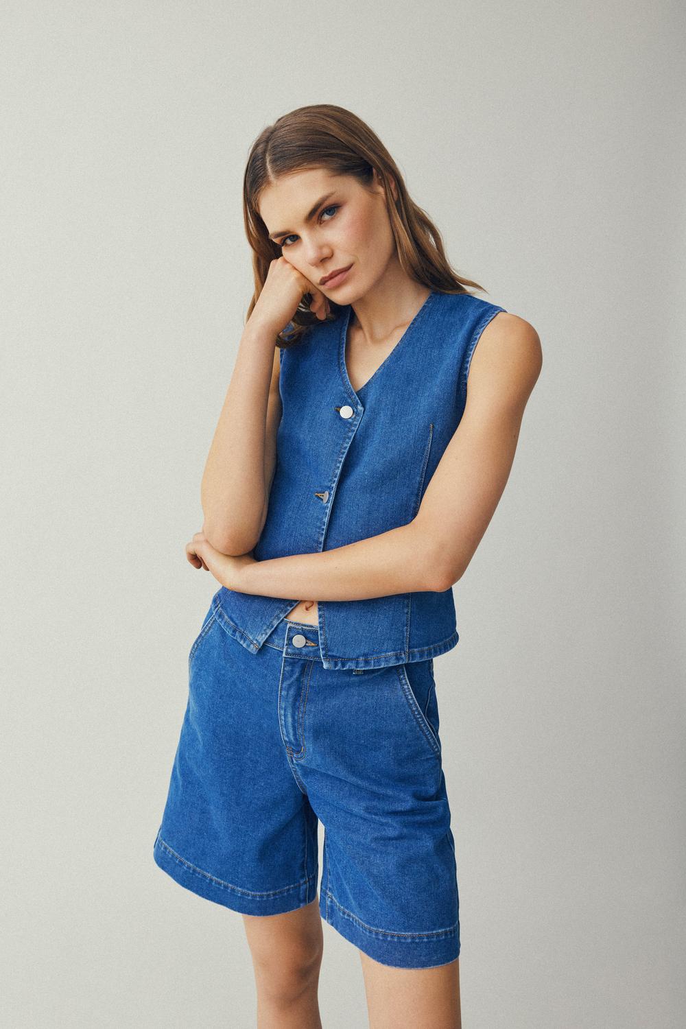 The Kenya Demin Shorts offer a versatile Bermuda style, perfect for both casual and dressed-up summer looks with their loose fit.