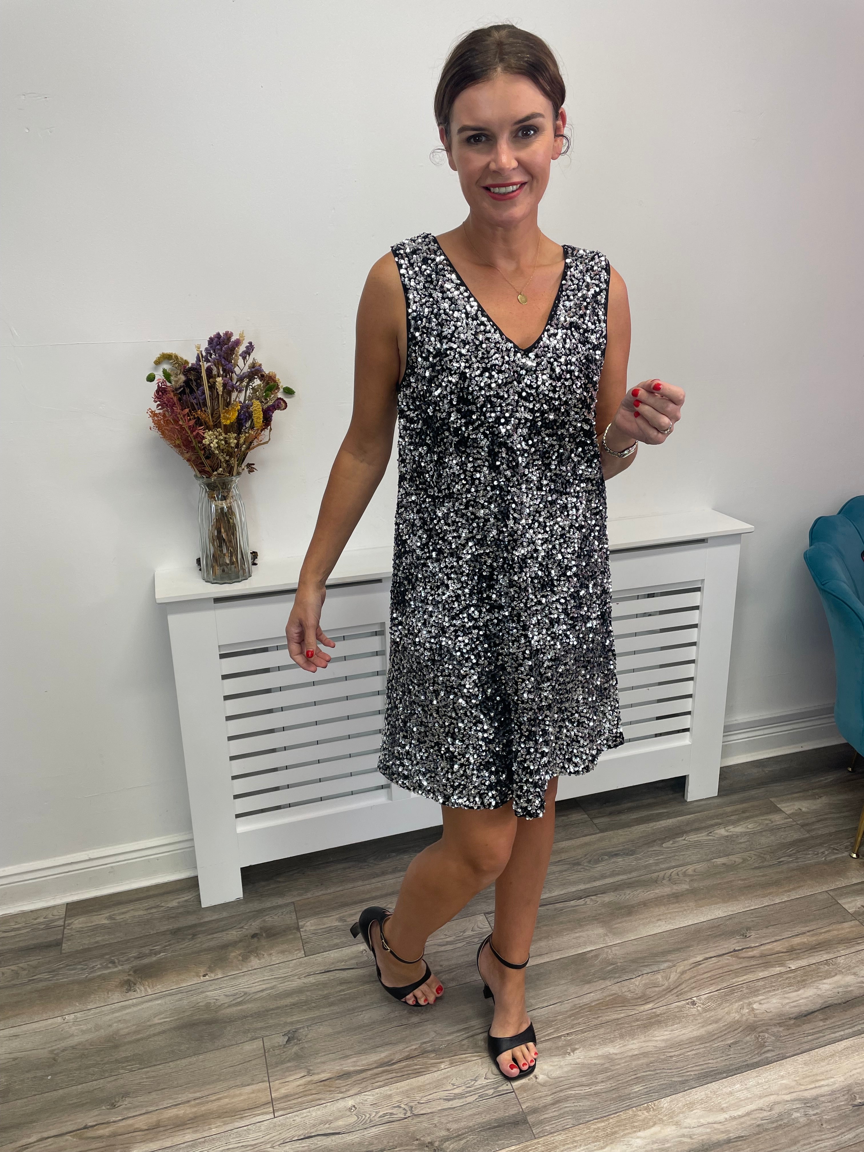 KINNE SEQUIN MINI DRESS (BLACK/SILVER)
