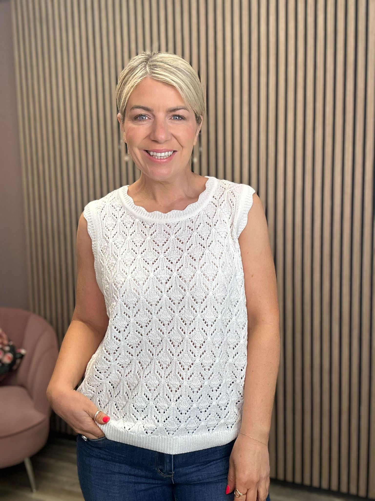 LAUNA SLEEVELESS KNITTED JUMPER (CLOUD DANCER)