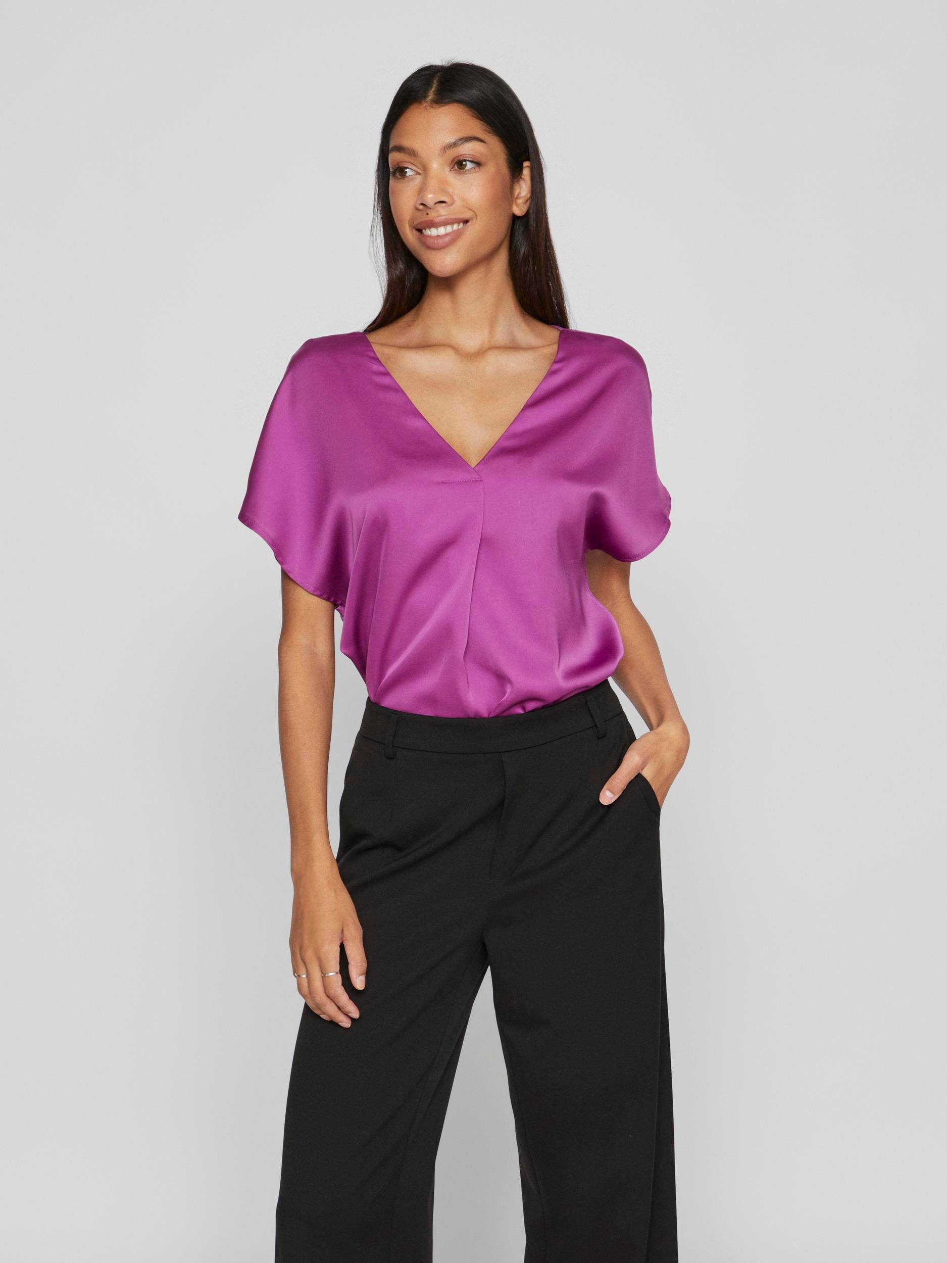 LETTE V-NECK SATIN TOP (CATTLEYA ORCHID)