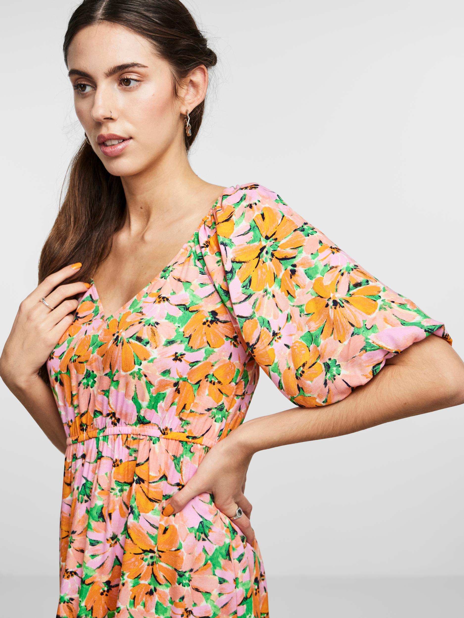 The LOLA MIDI DRESS is a vibrant piece that is sure to brighten your day. This dress features a v neckline, all-over floral print and falls to midi length with a tiered hemline. The short sleeves with elasticised shoulders and elastic back panel ensure a comfortable fit.