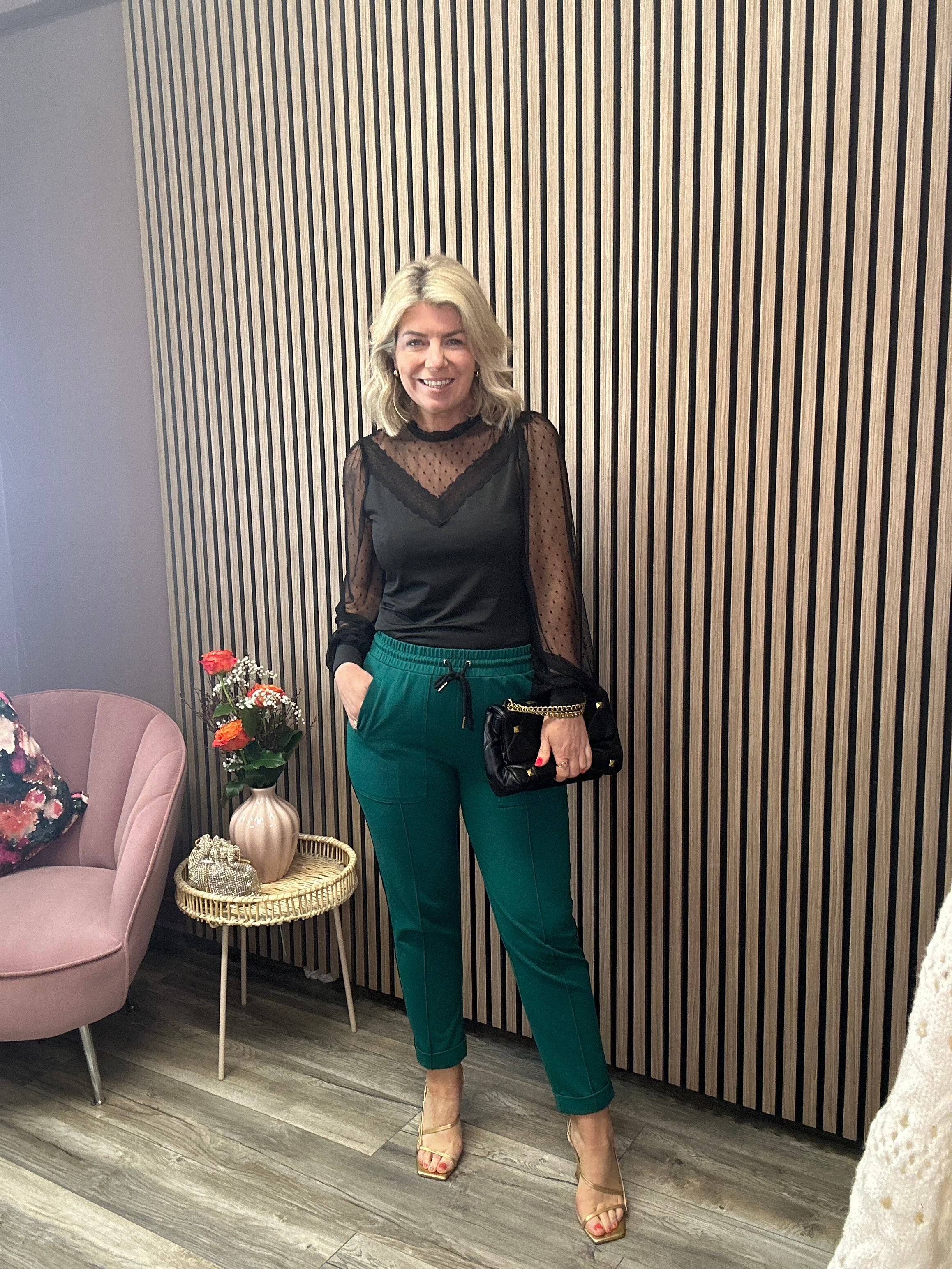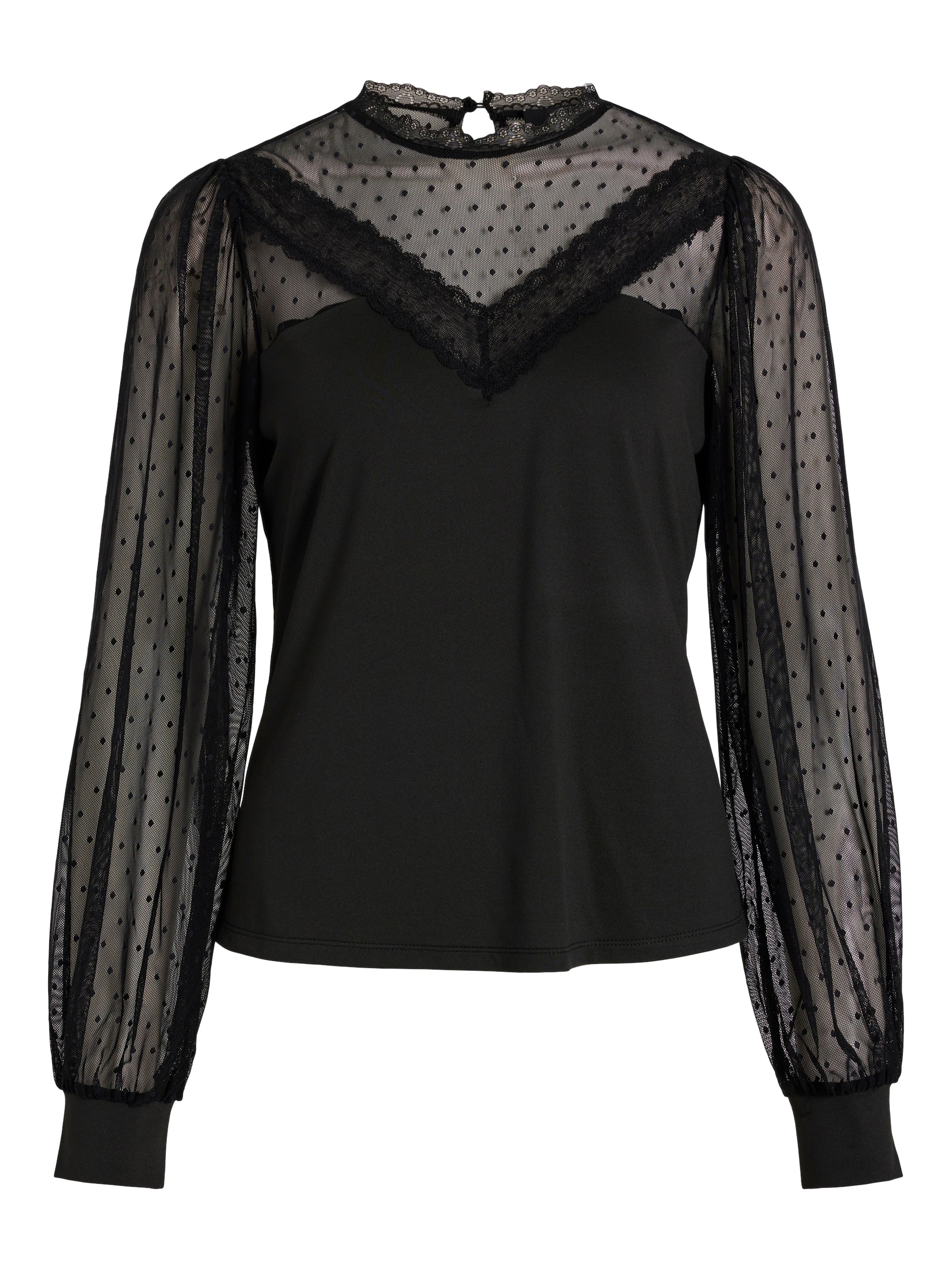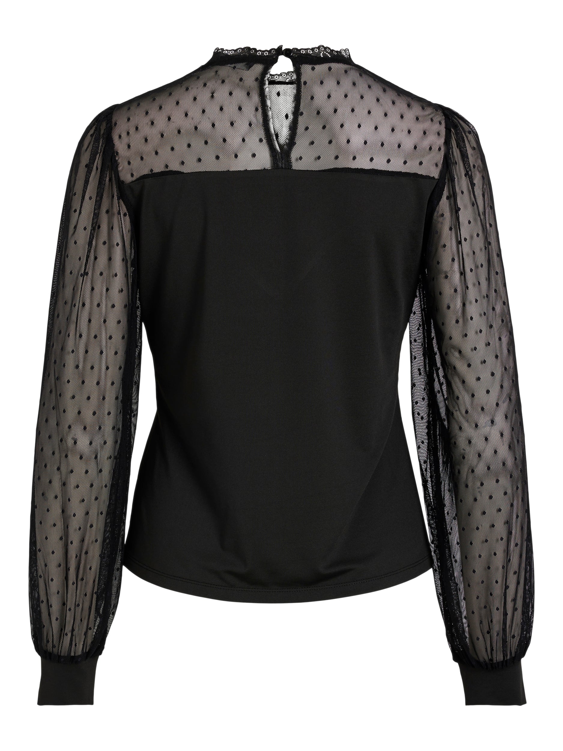 The LUCKY top is designed for sophistication in mind. It features long sheer sleeves and a dotty lace design to flatter your silhouette. Its high neck and single back button closure add a touch of elegance. Perfect for an evening out.