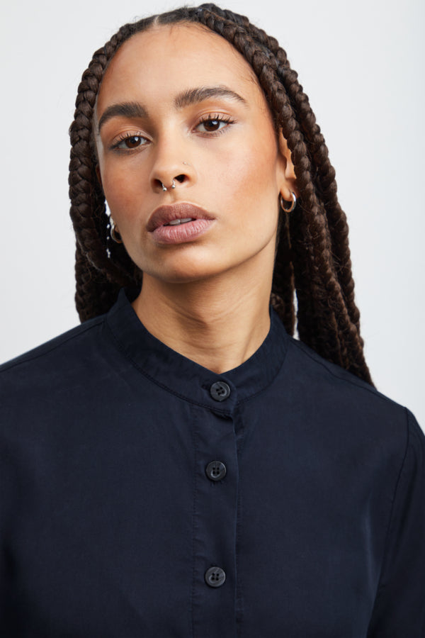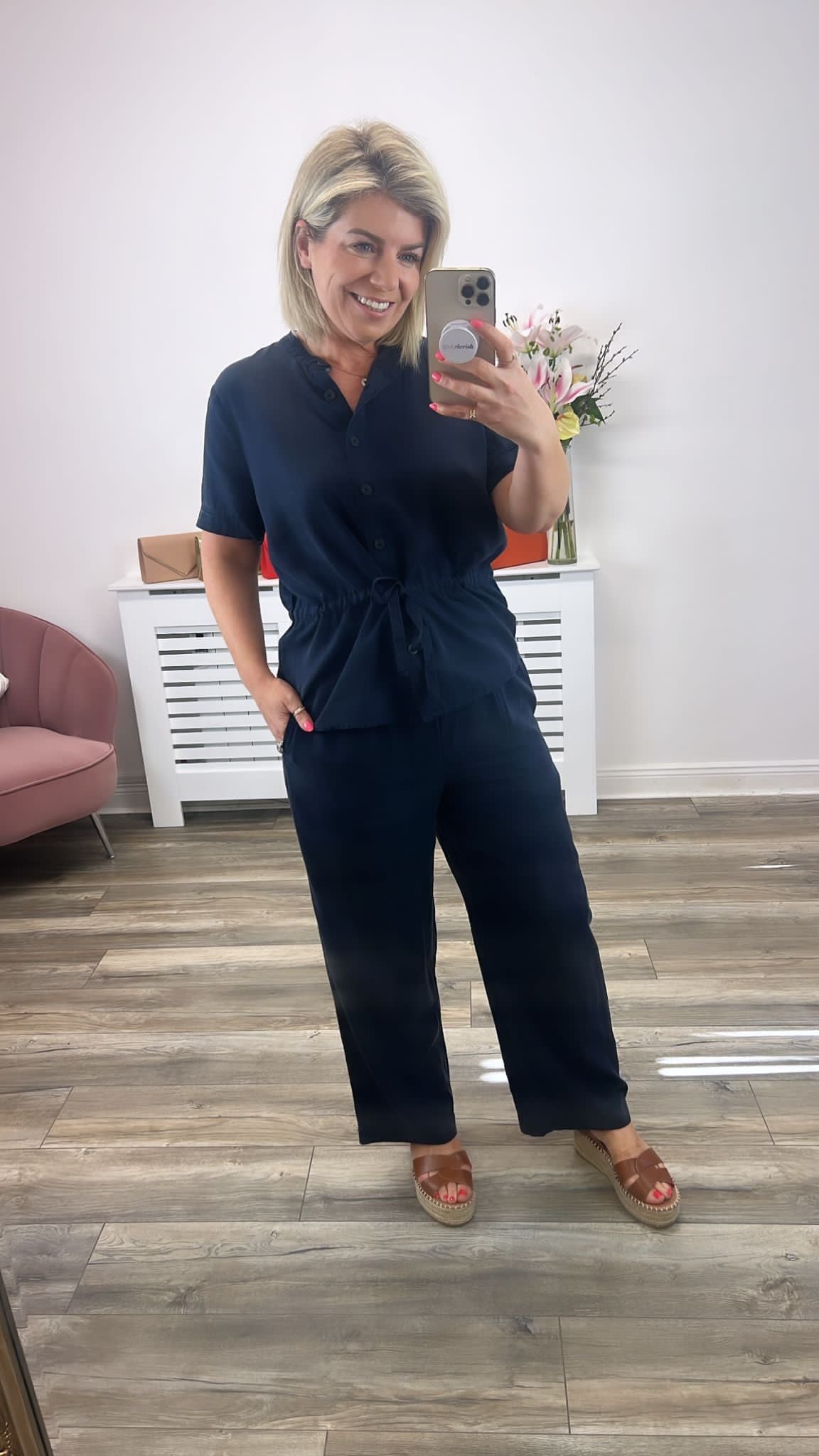 We are in love with this super cute shirt, featuring a grandfather style collar, short sleeve and full button up front. Pair with jeans for a cute day time look