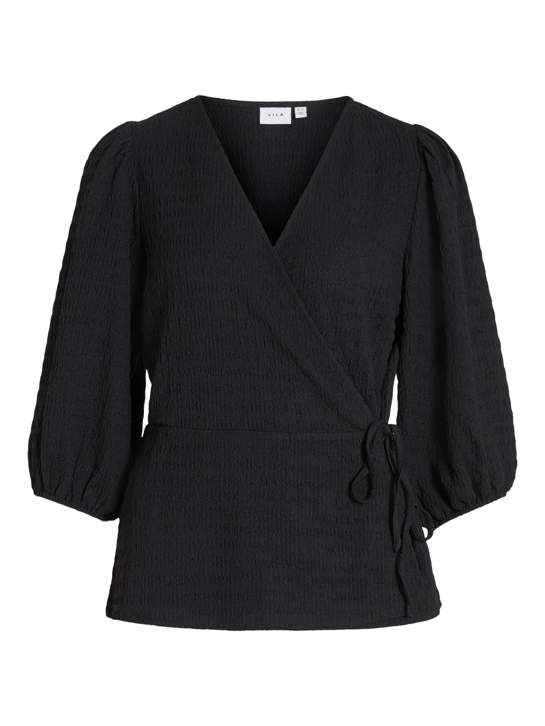 The LYNN wrap top features a unique wrap fastening, adding a touch of fun and flair to your wardrobe. The 3/4 length sleeves provide the perfect balance of coverage and style. Transform any outfit with this versatile top.