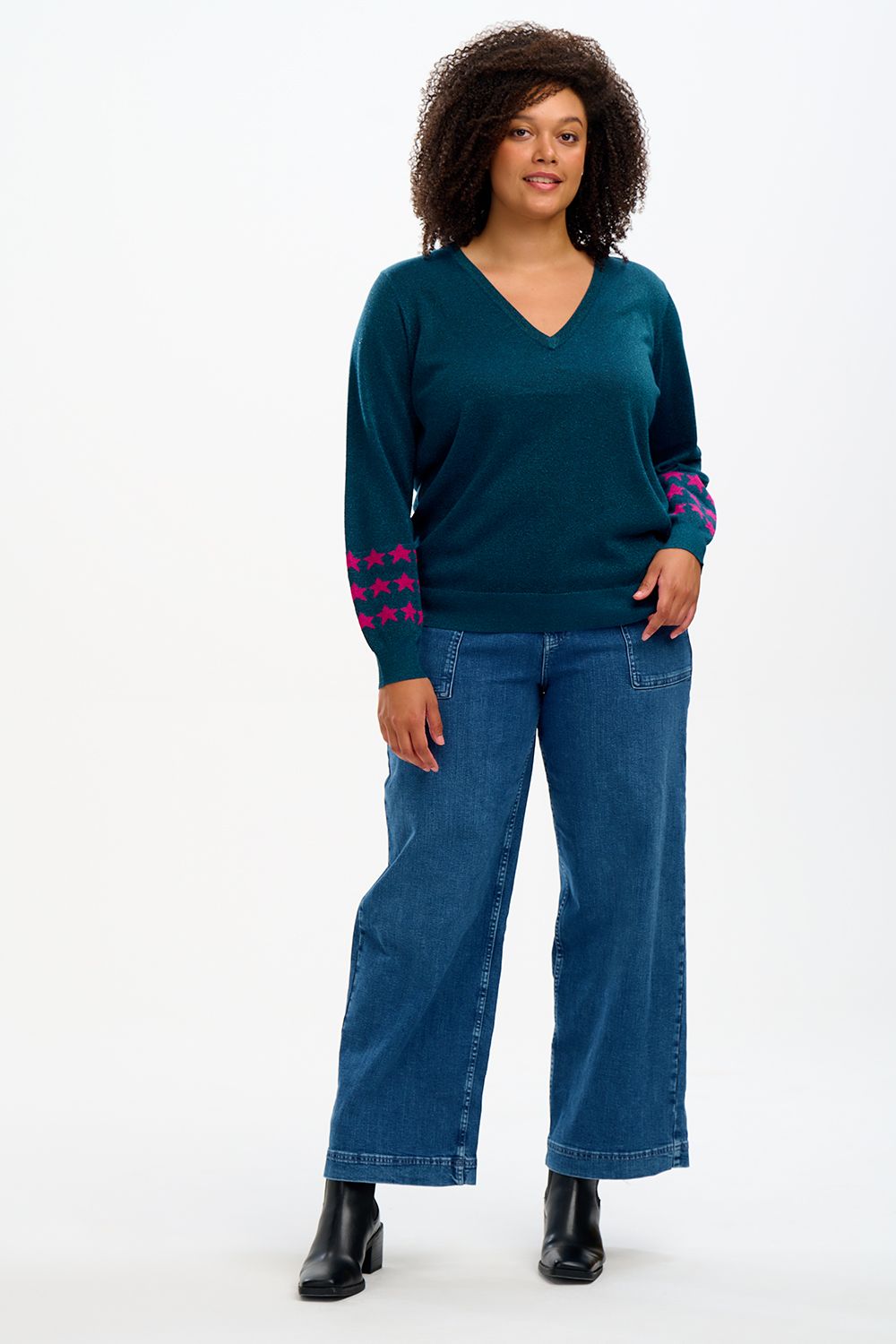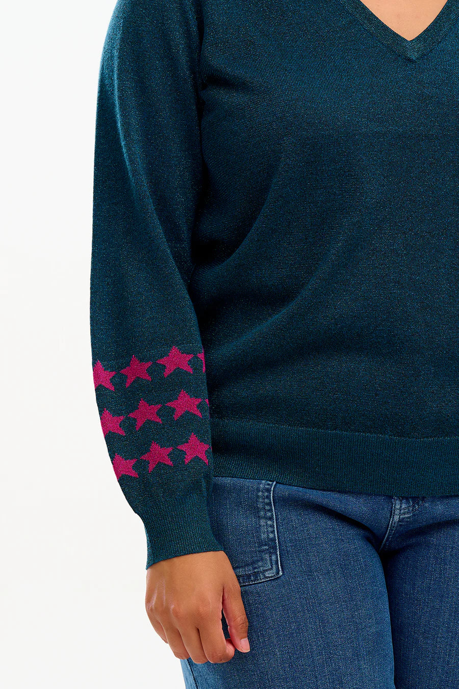 MARCELLA V-NECK JUMPER (TEAL/STARLIGHT)